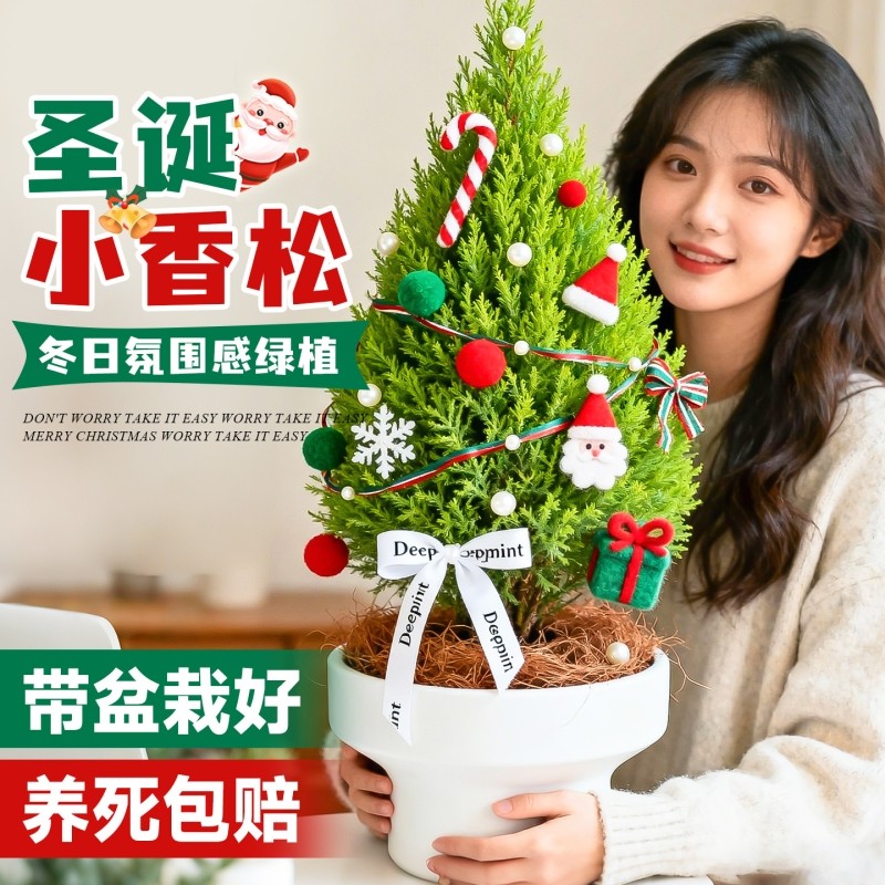 圣诞树小香松盆栽室内客厅桌面真树香松柏绿植氛围感花卉植物创意