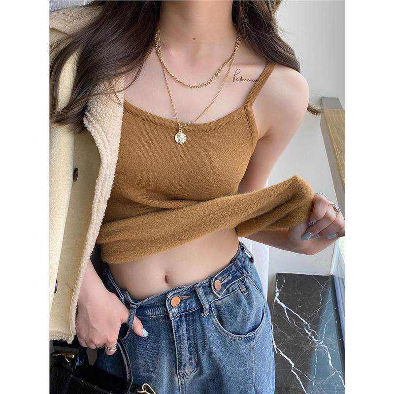 加绒吊带背心女内搭冬季新款2025爆款水貂绒贴身保暖针织内衣叠穿
