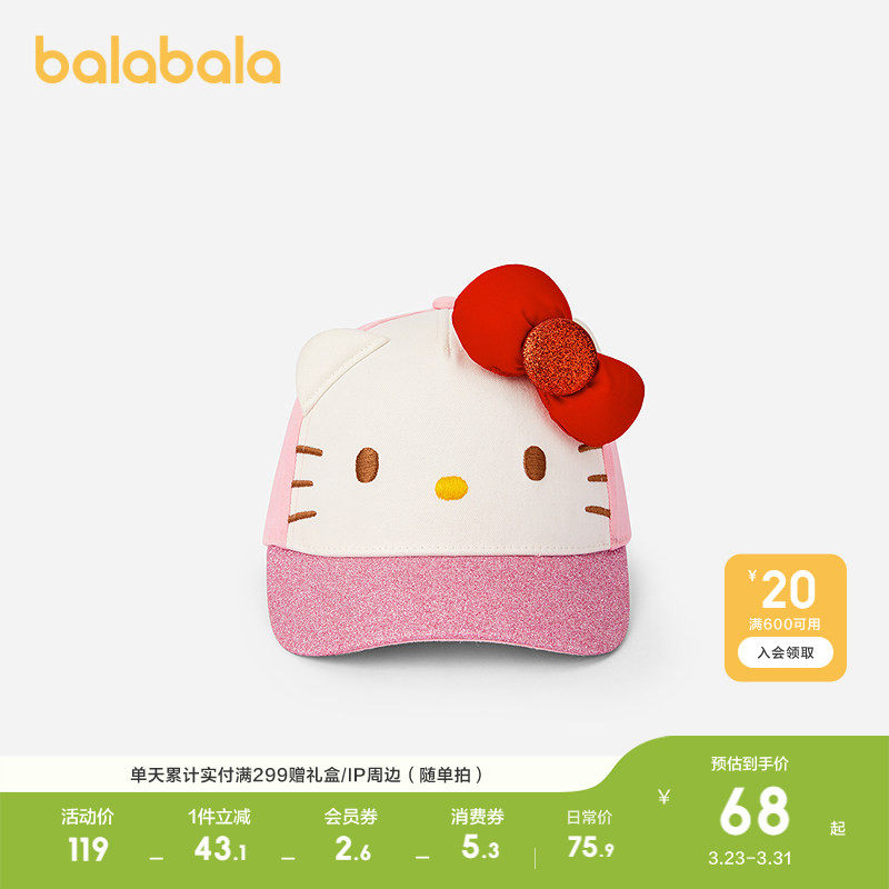【三丽鸥IP】巴拉巴拉儿童棒球帽小女孩帽子舒适轻便可爱便携户外