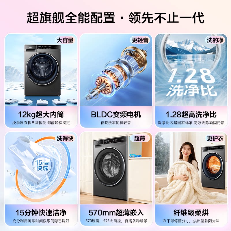 海尔出品统帅12kg大容量滚筒洗衣机换新补贴家用洗烘一体732旗舰