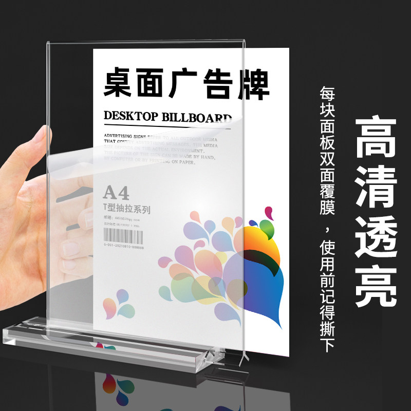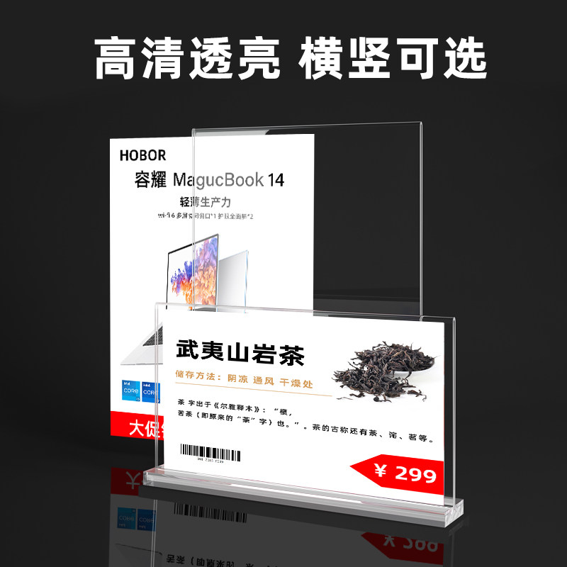 亚克力桌牌立牌席卡强磁台签桌签座位牌双面会议磁吸a4台卡台牌桌面展示牌工位姓名牌席签立式坐席牌20×10cm
