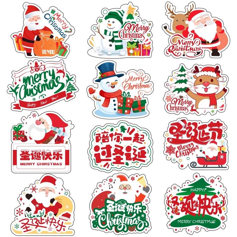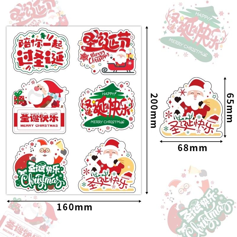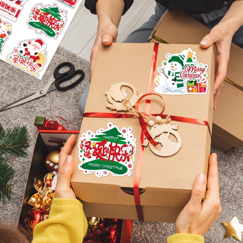 圣诞快乐贴纸可爱卡通圣诞老人雪人麋鹿小贴画圣诞节新年礼物包装封口贴节日装饰创意墙贴桌贴防水不干胶标签