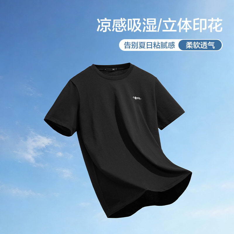 【凉感】HLA海澜之家动力火箭系列短袖T恤26春夏新印花短袖上衣男