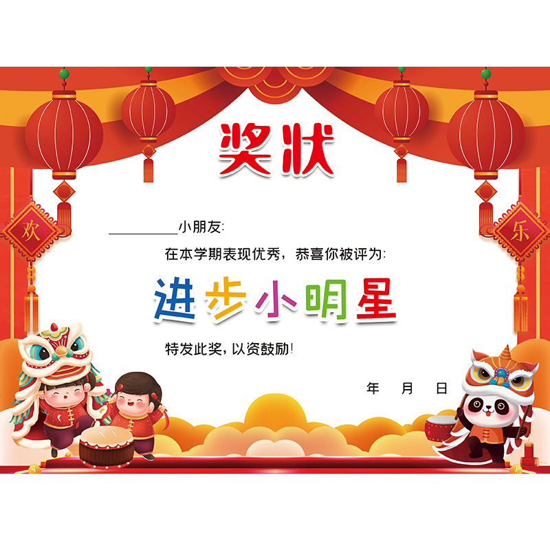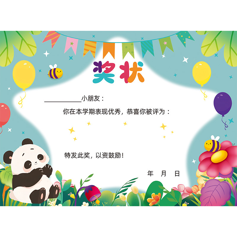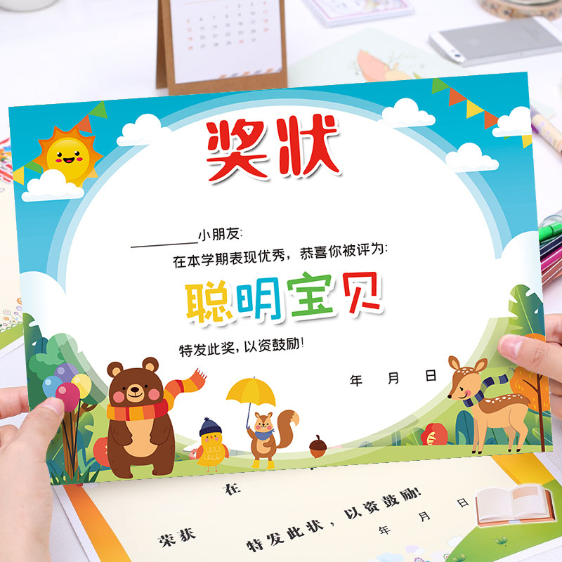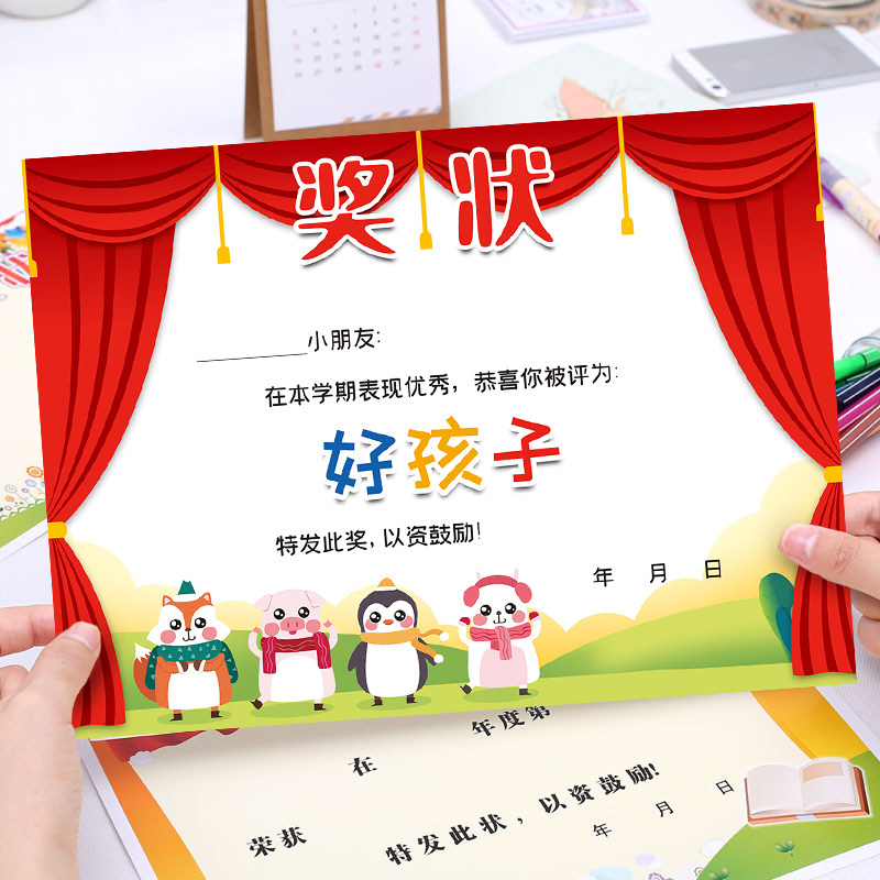 A4幼儿园好孩子进步优秀学期末小奖状加厚创意卡通多款混装可定制