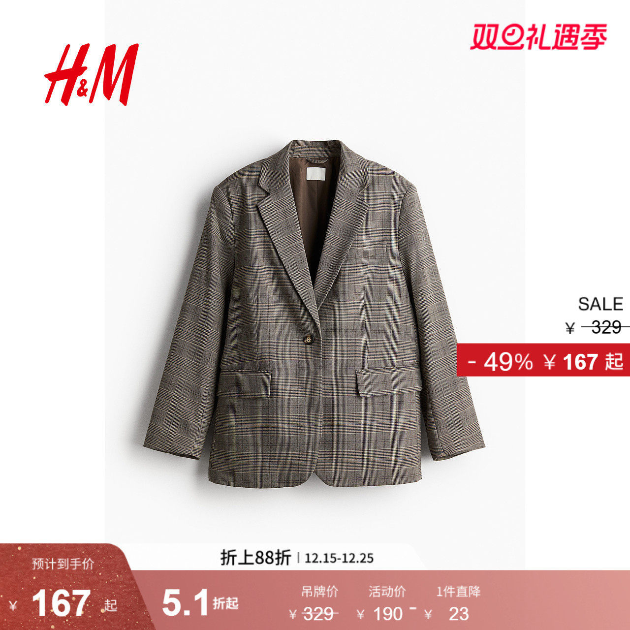 HM女装西装冬季女士简约时尚通勤宽松休闲西装1232747