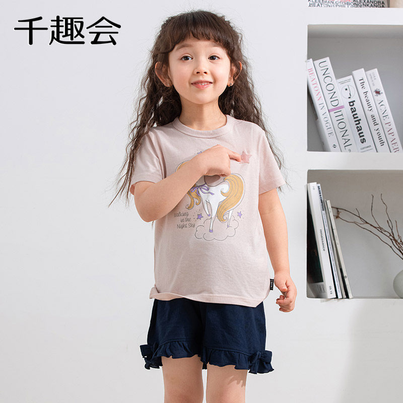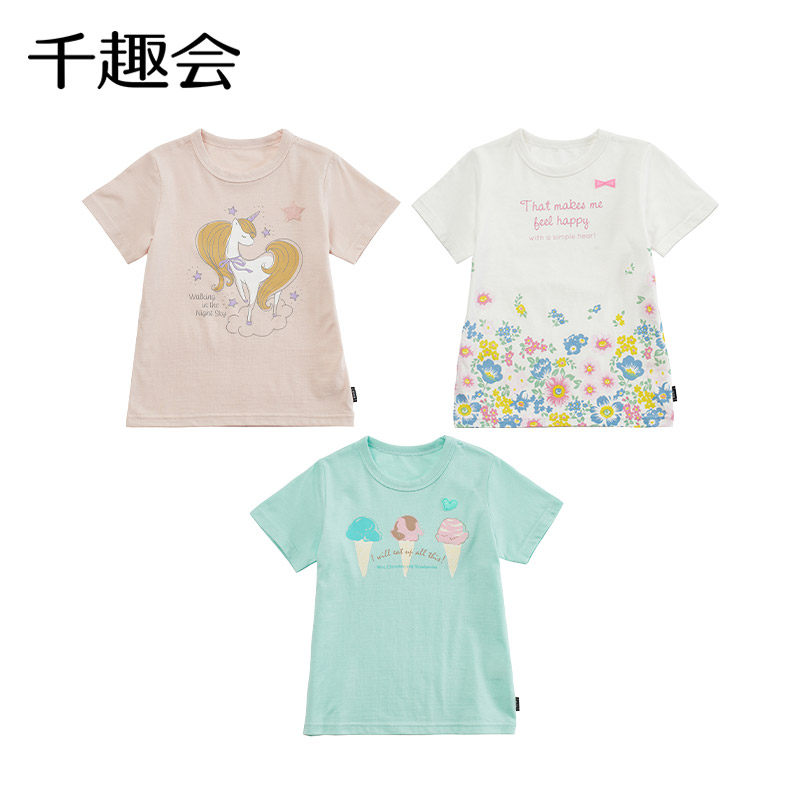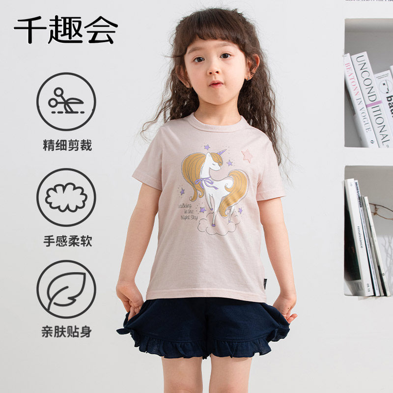 千趣会童装夏款女童短袖清凉可爱印花轻薄柔软透气棉质T恤