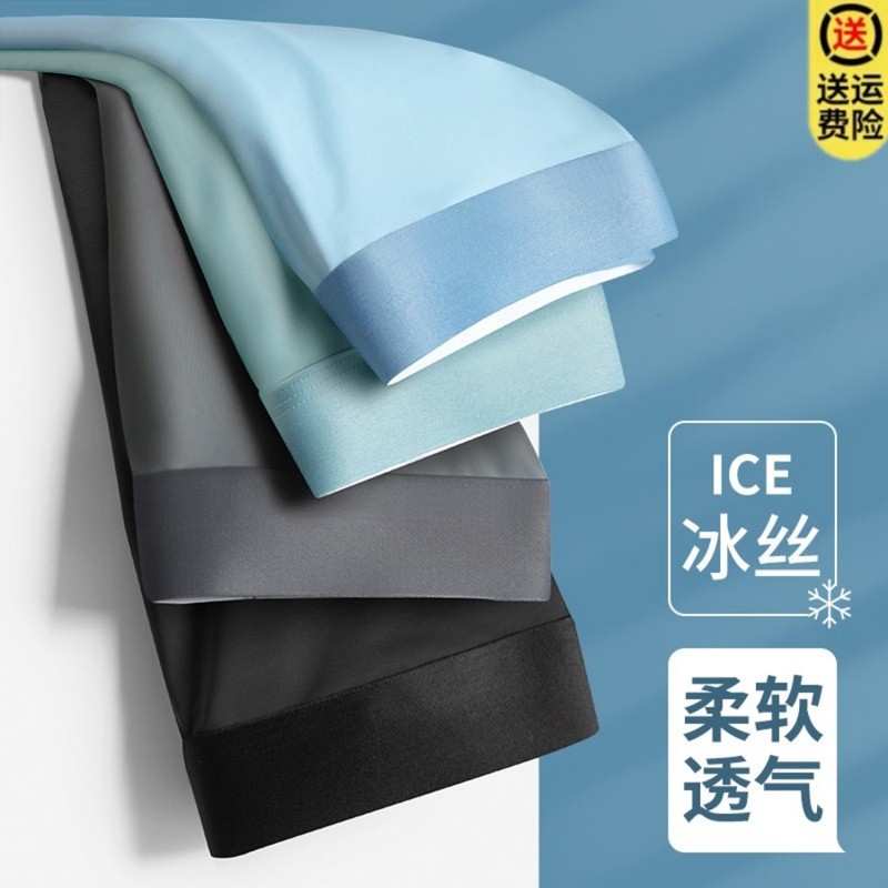 男士内裤男平角裤冰丝无痕潮男生四角短裤头夏季透气底裤裤衩速干
