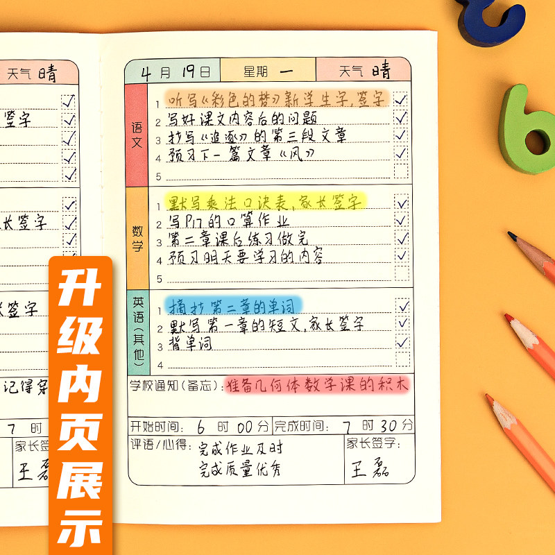 作业登记本记作业小本子小学生用一年级三四年级儿童课堂笔记记录本初中数学语文学习家庭默写单词背诵内页