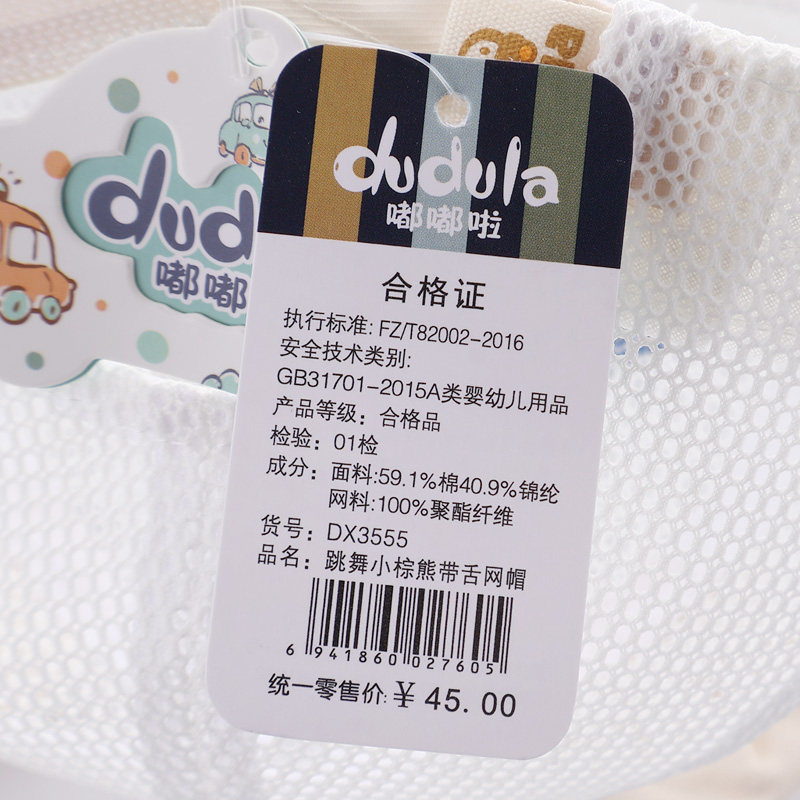 嘟嘟啦夏季男女宝宝帽子婴幼儿童可爱鸭舌帽透气全网眼遮太阳凉帽