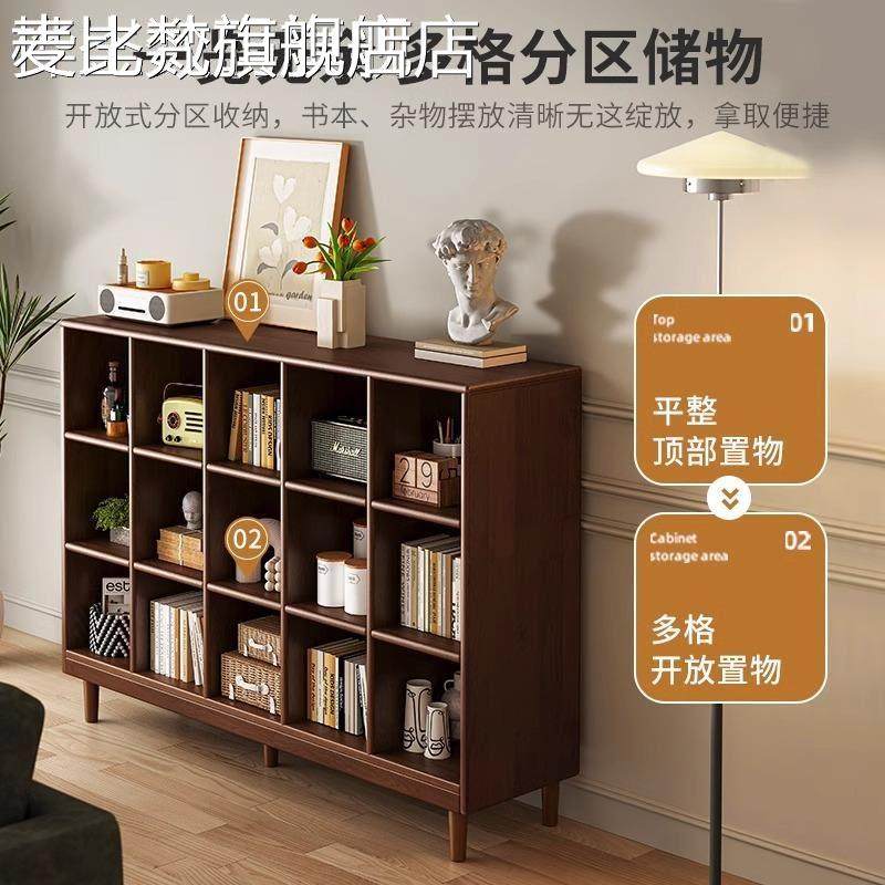 麦比梵实木柜子储物柜日式原木风书柜收纳置物格子柜落地书架客厅八格柜床笠拉车
