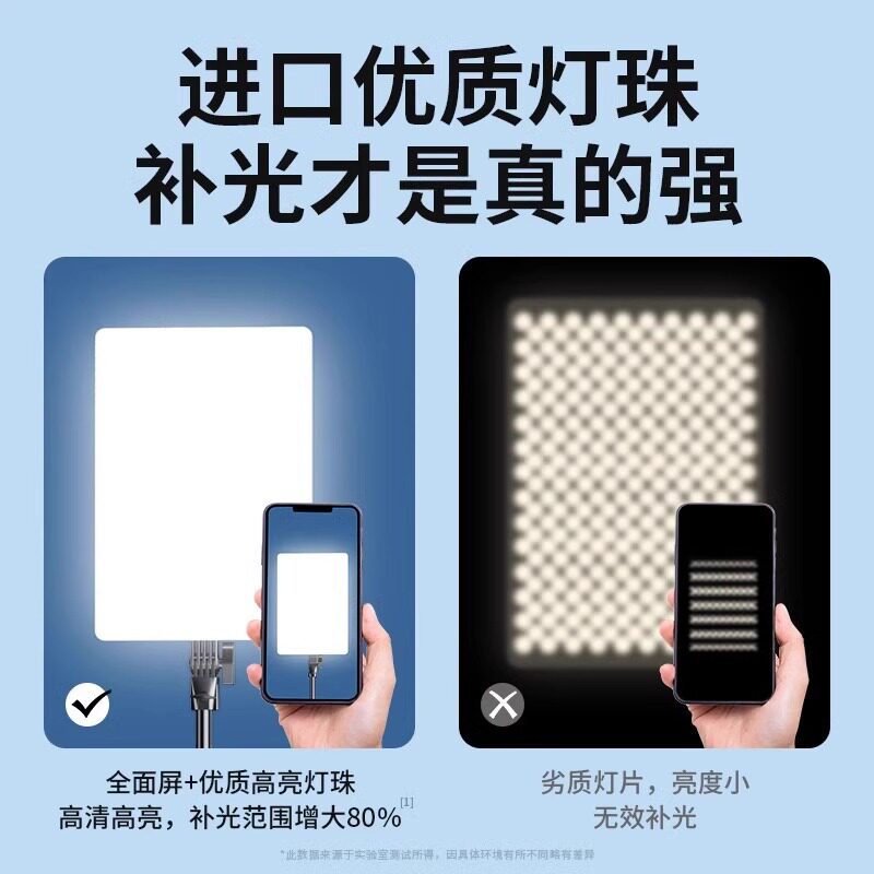 手机直播补光灯主播专用直播间网红打光神器室内拍照摄影上镜美颜嫩肤面光灯全屏自拍便携式桌面落地三脚支架