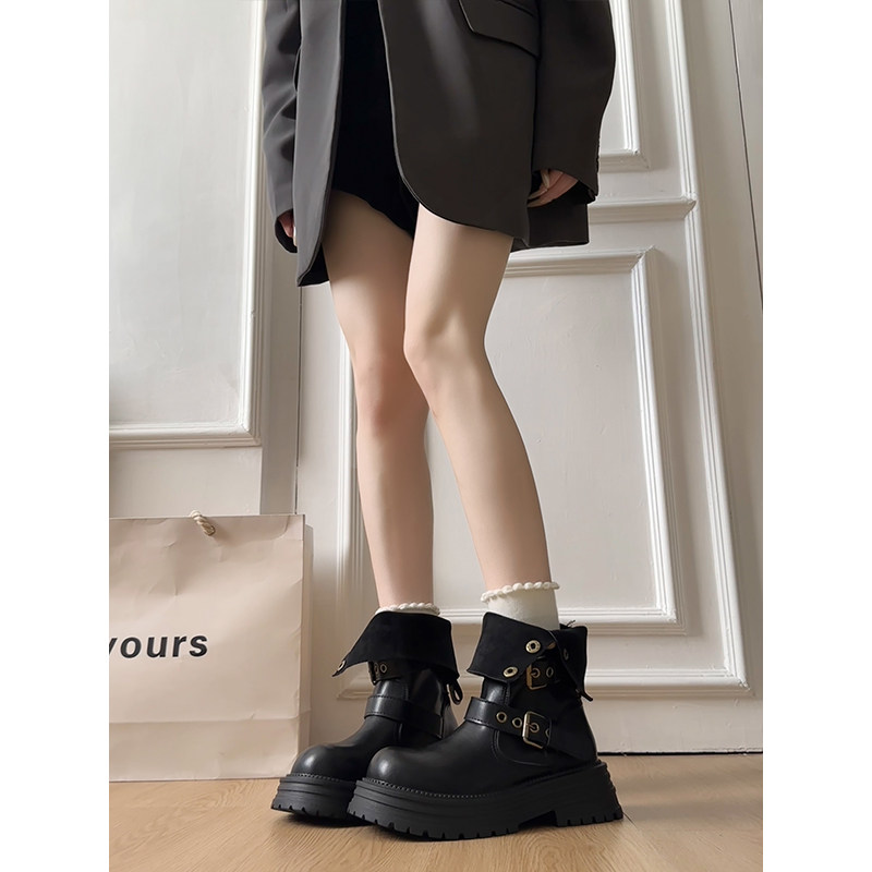 星期六英伦风马丁靴女复古2025冬新款厚底增高骑士靴皮带扣中筒靴