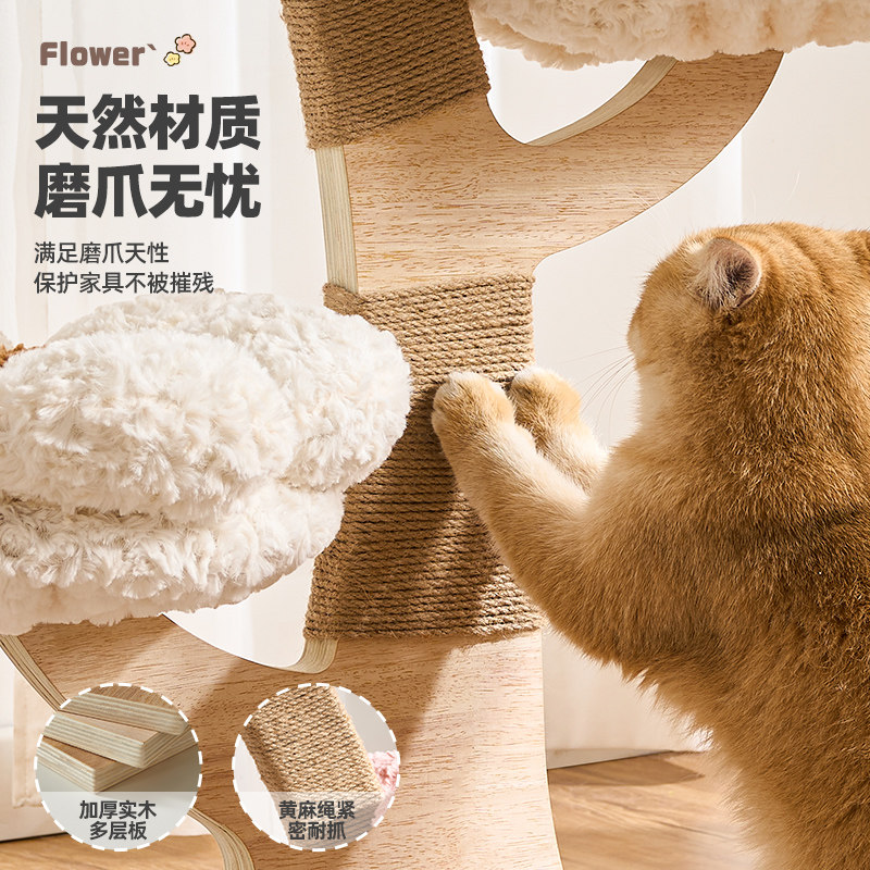 实木猫爬架猫窝一体剑麻猫抓柱家用小户型不占地蘑菇花朵猫树猫架