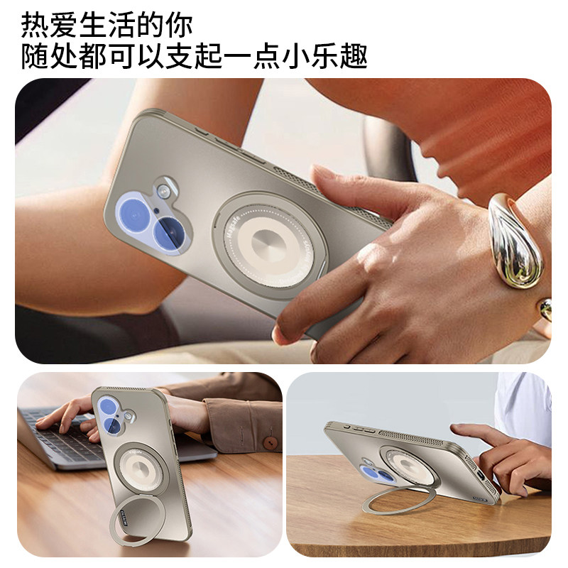 适用iPhone16手机壳苹果16promax新款16pro磁吸支点壳带支架16plus全包镜头防摔ip16轻奢高级感超薄por散热