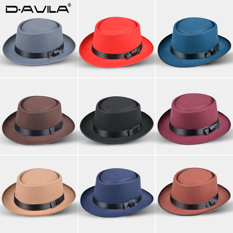 新款男士礼帽女名媛英伦复古爵士帽秋冬表演毛呢平顶黑色礼帽毡帽