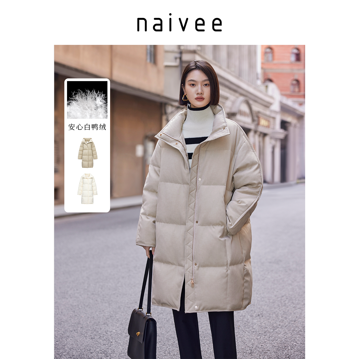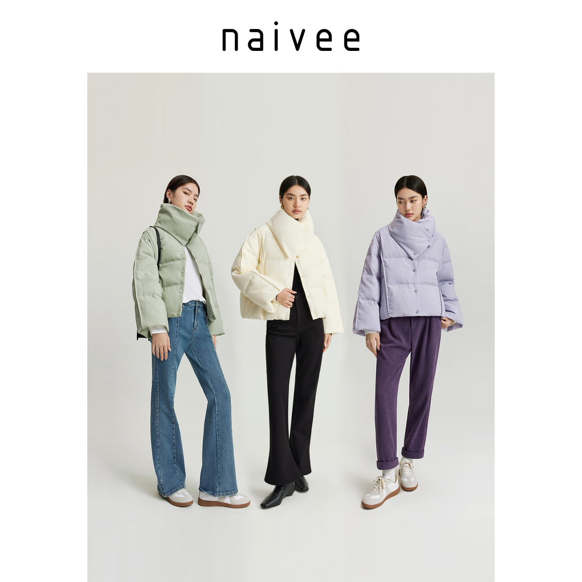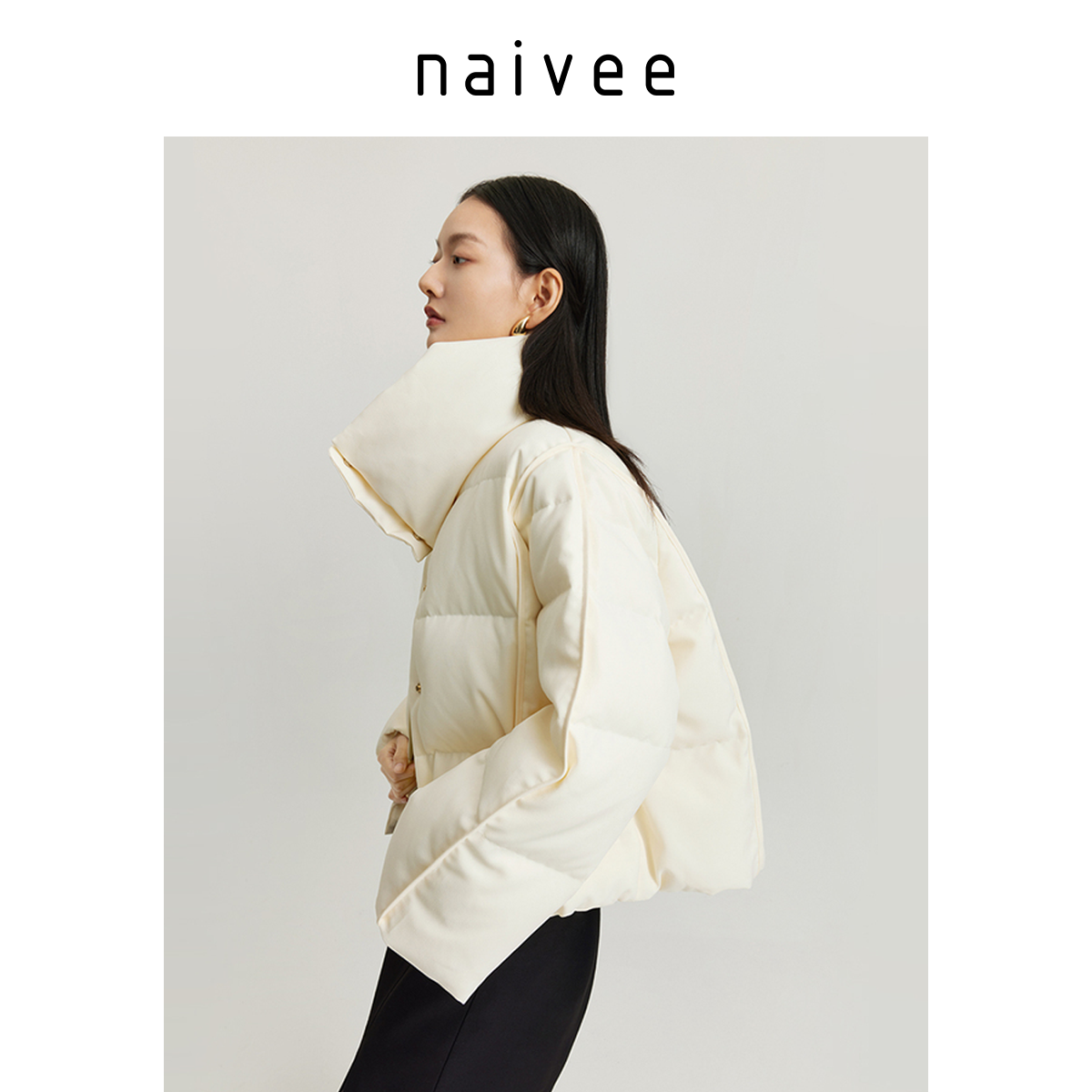 naivee纳薇冬季新中式多色立领宽松保暖时尚百搭厚款面包服羽绒服