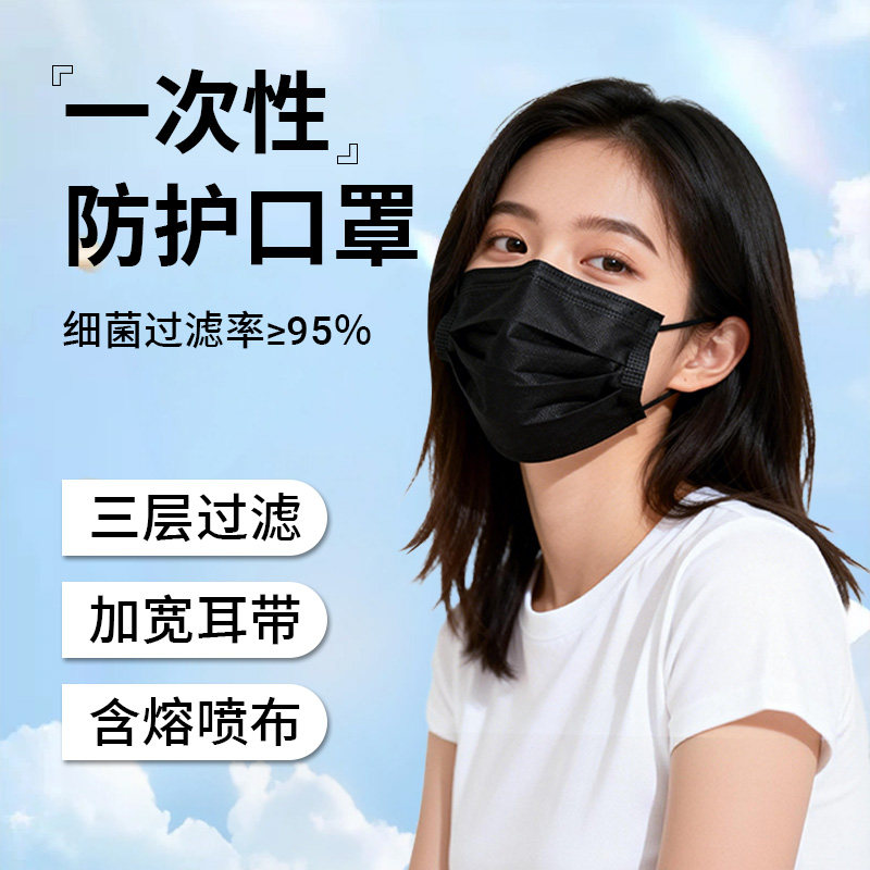 一次性口罩三层四季通用熔喷布工业粉尘肺防尘透气防晒防飞沫餐饮