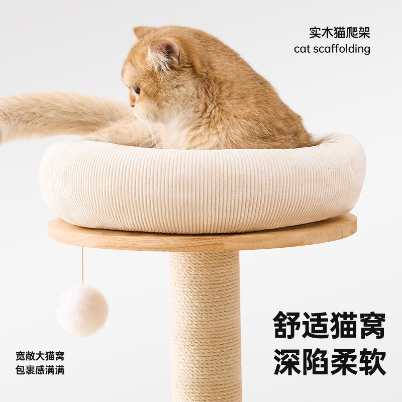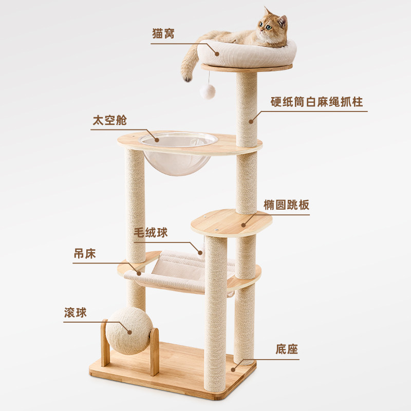 实木猫爬架猫窝猫树一体家用小户型不占地太空舱猫咪攀爬柱剑麻球