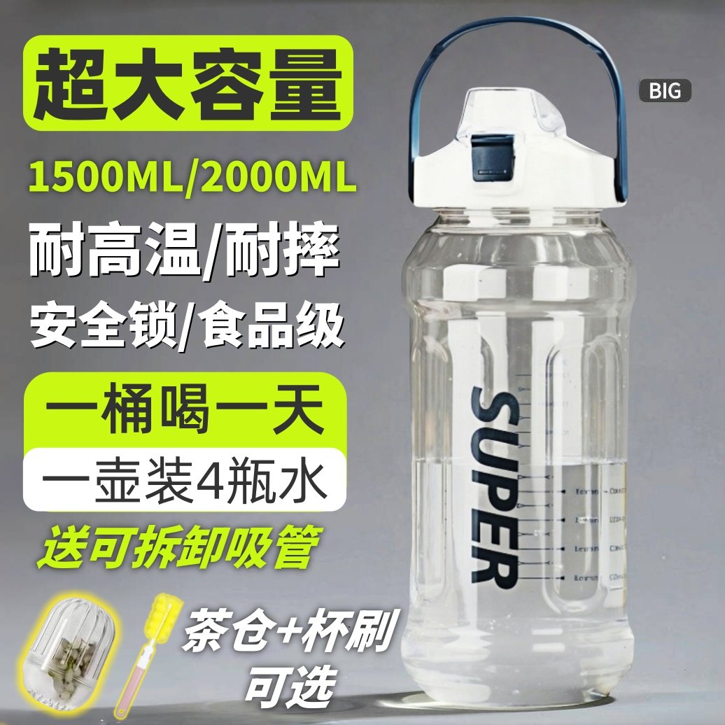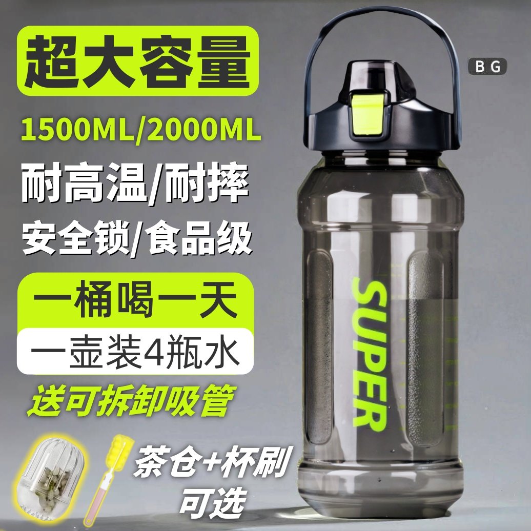 超大容量耐高温水杯男女生户外健身便携水壶夏季运动吸管喝水