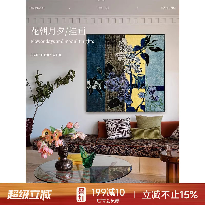 蜡笔派花朝月夕挂毯画客厅玄关装饰画法式中古风沙发边柜挂画