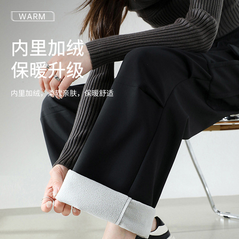 魔悦加绒糯米裤2025秋冬新款口袋显瘦休闲裤2