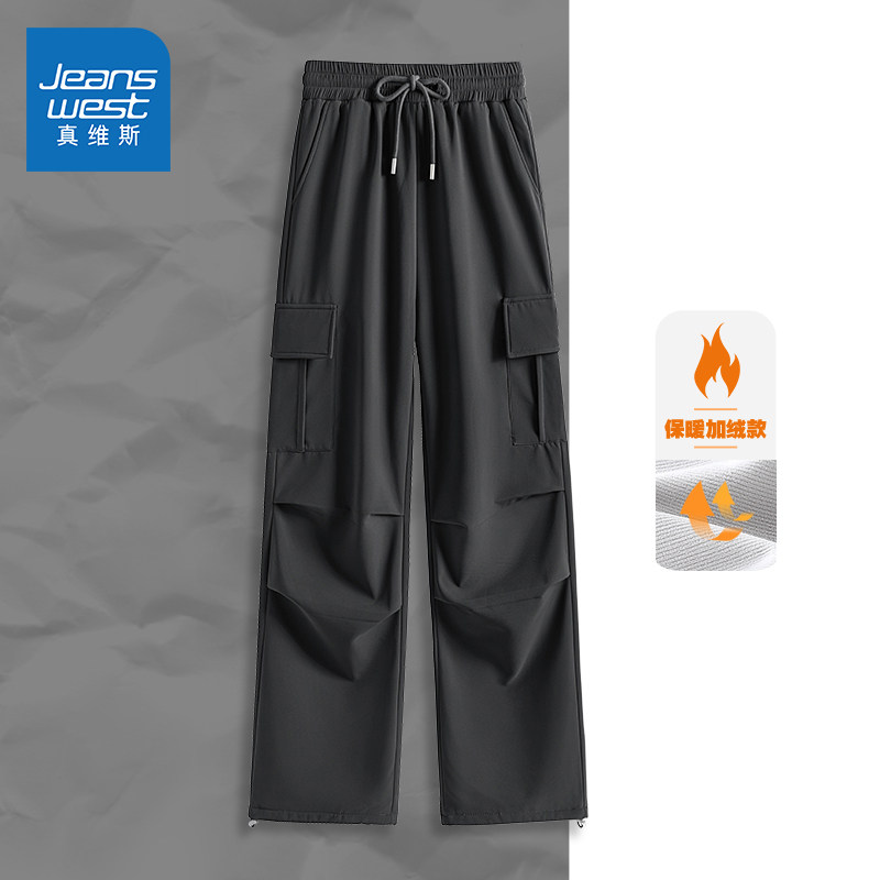 JR真维斯工装裤女春秋高腰显瘦加绒直筒美式运动休闲长裤