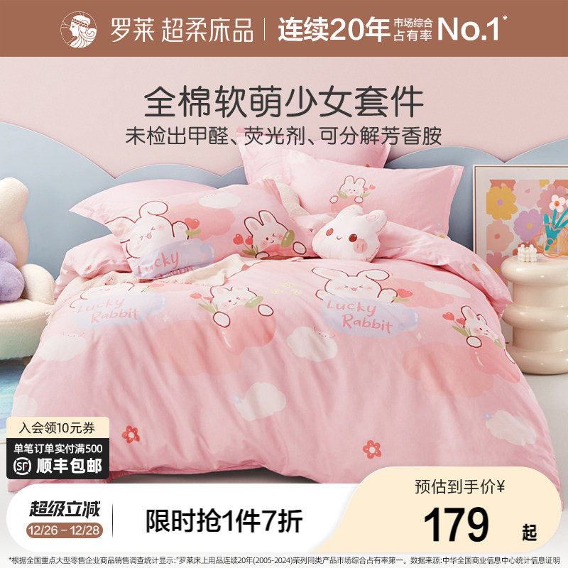 罗莱家纺套件儿童四件套纯棉床单被套全棉A类女孩三件套学生宿舍