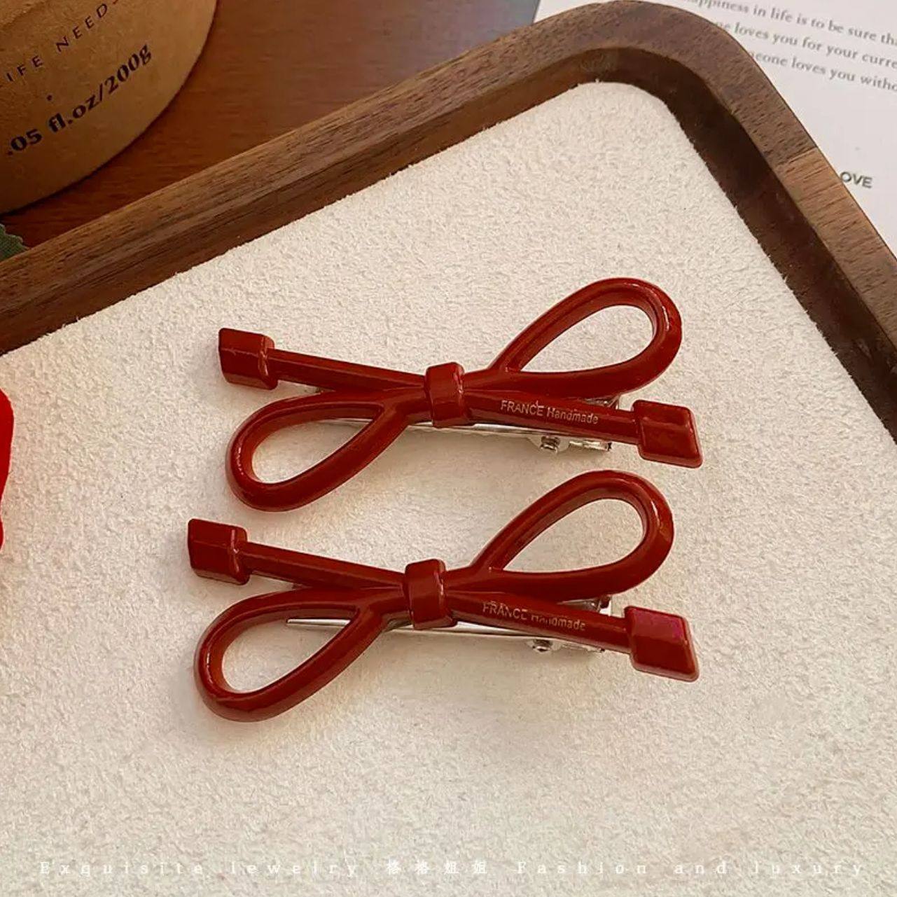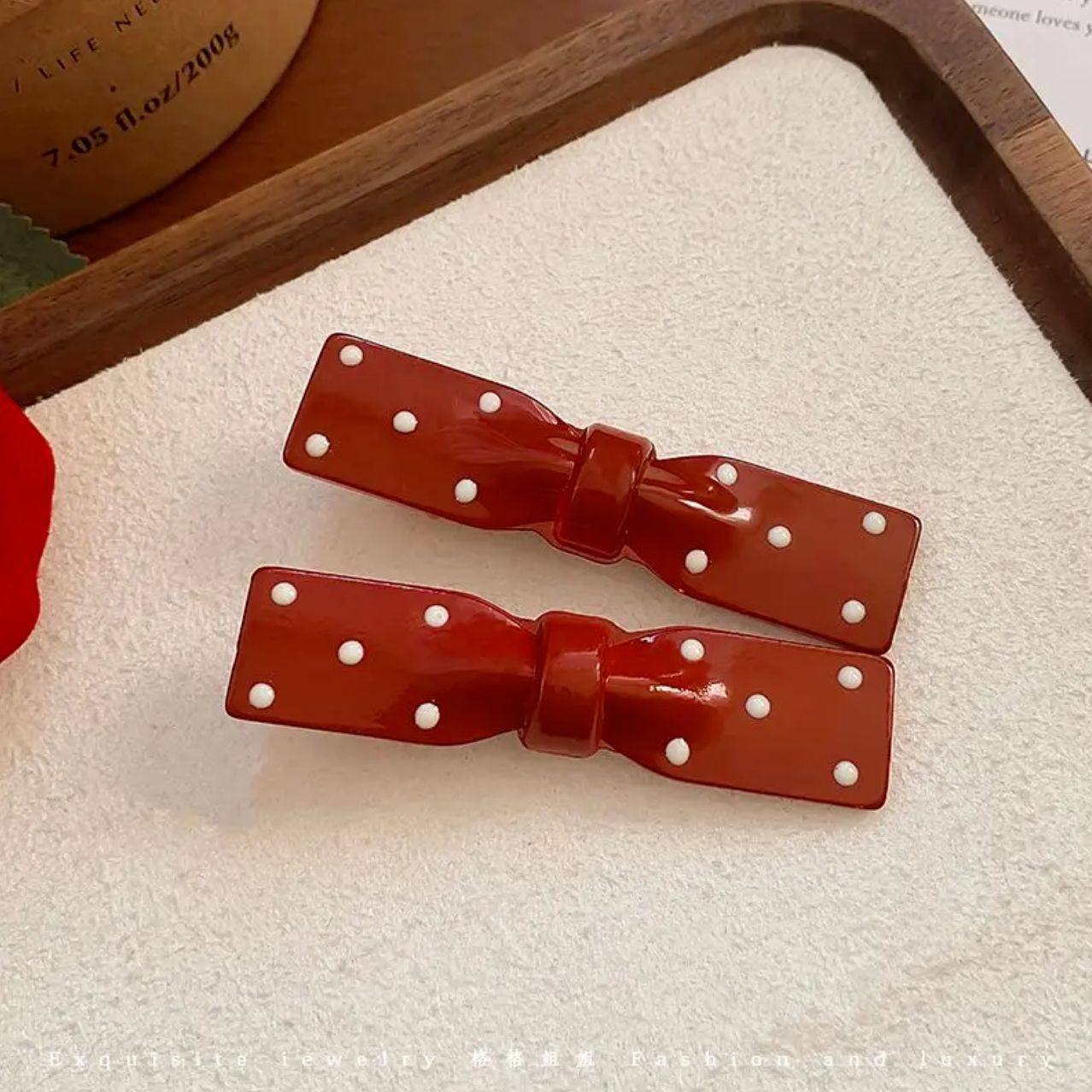法式甜美红色大号蝴蝶结发夹高颜值女孩侧边夹饰品夹子五角星波点