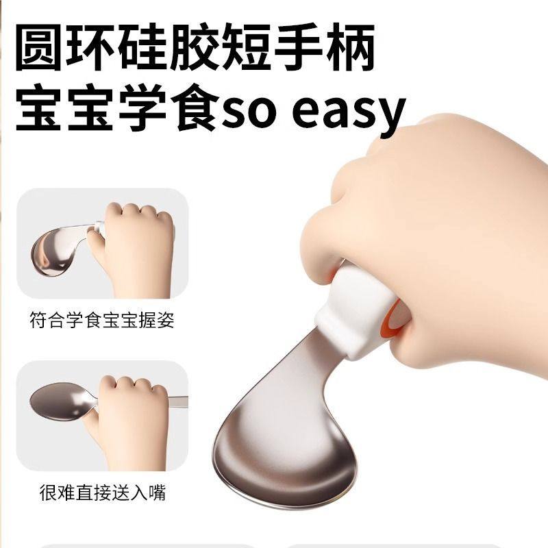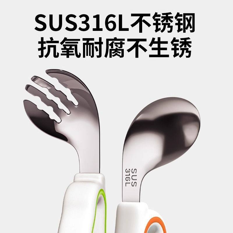 宝宝学吃饭训练叉勺一岁婴儿自主进食辅食勺316L不锈钢餐具套装