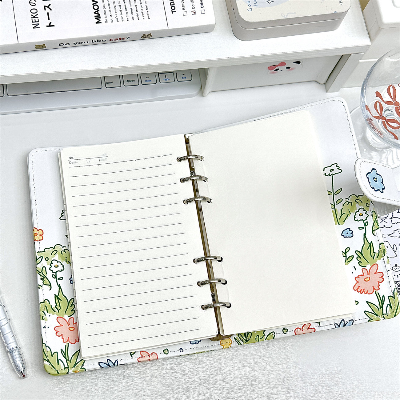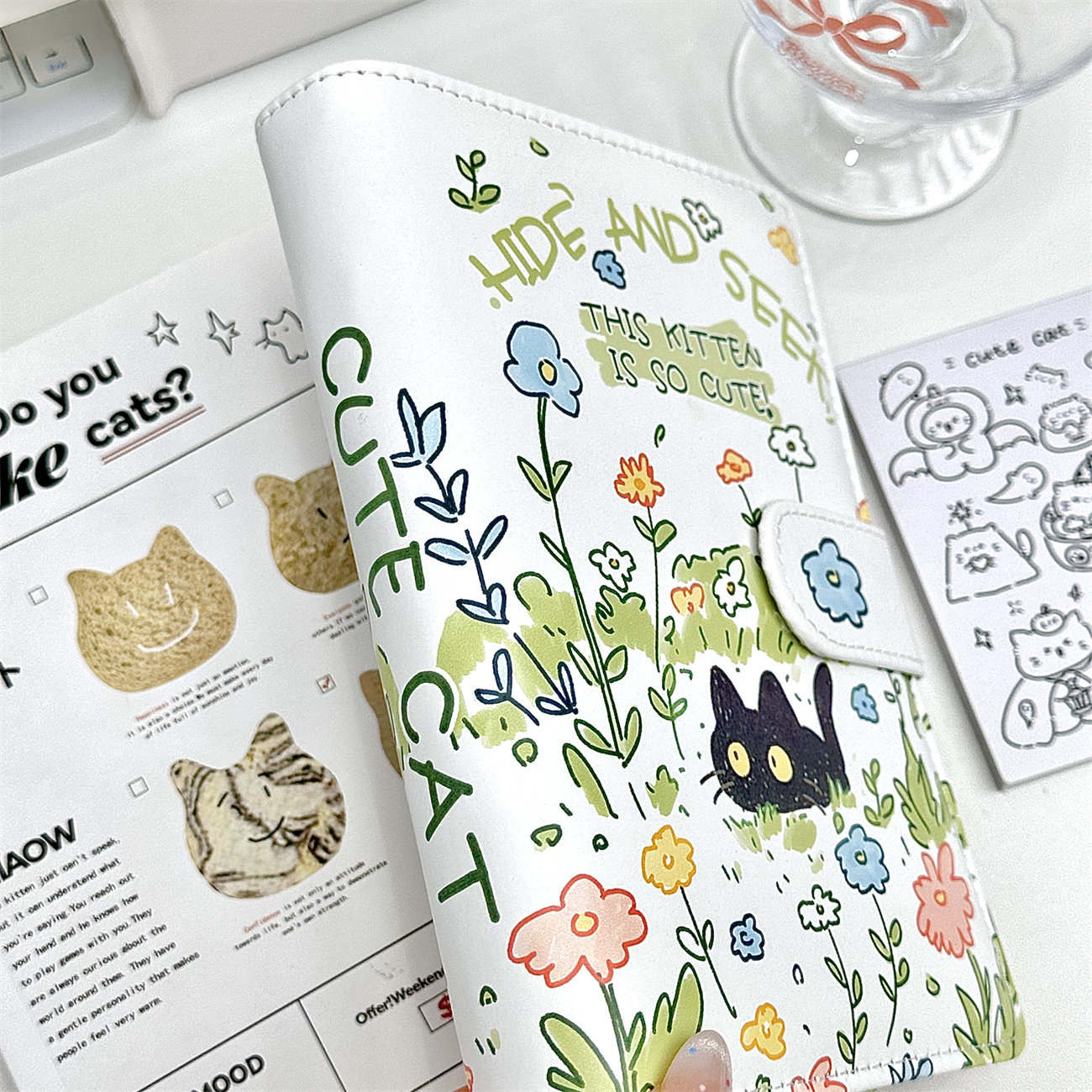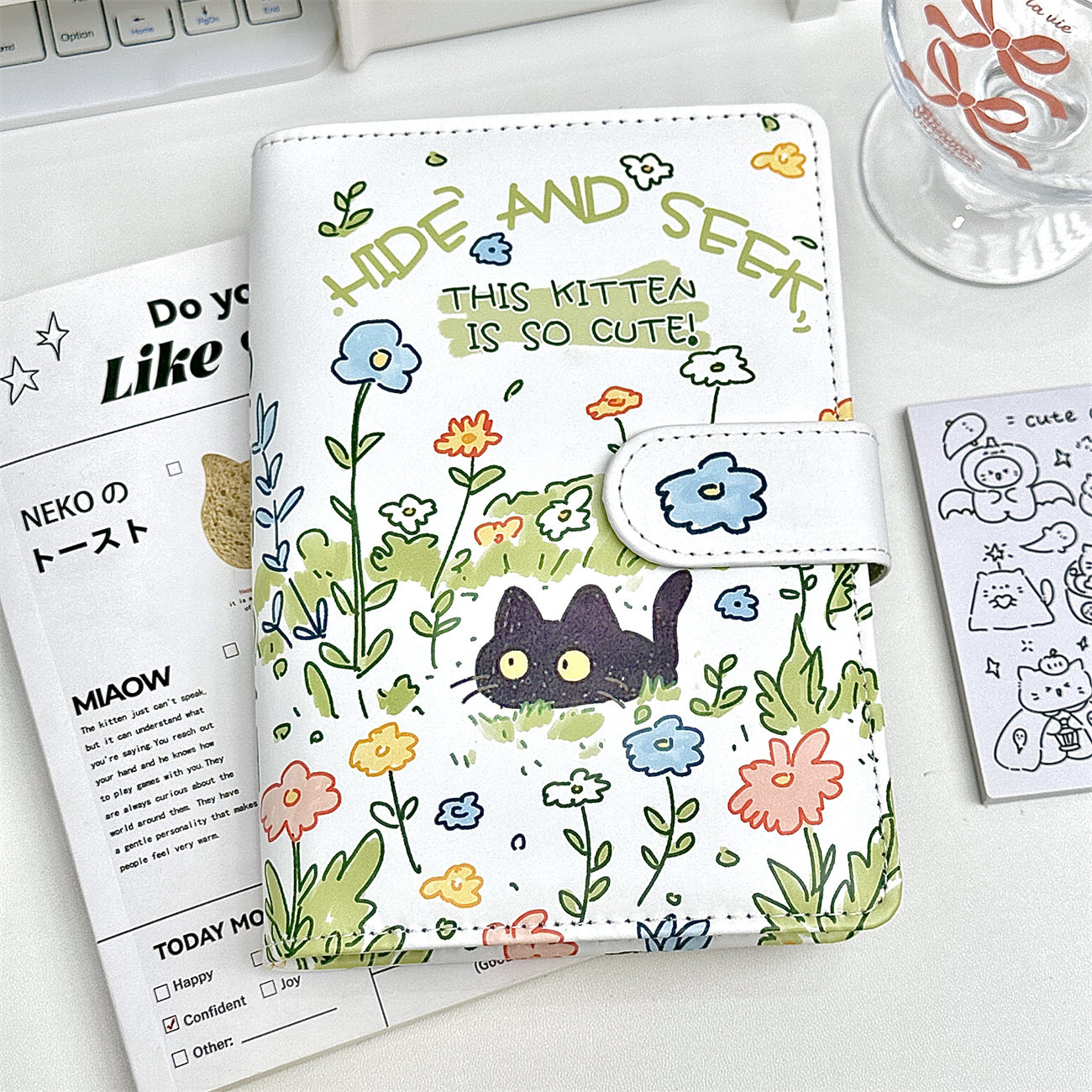 小红书同款花丛小喵高颜值笔记本中小学生A6PU软皮活页本记事本子