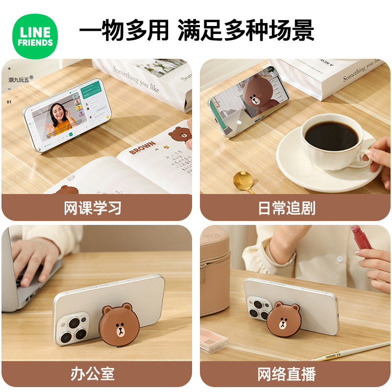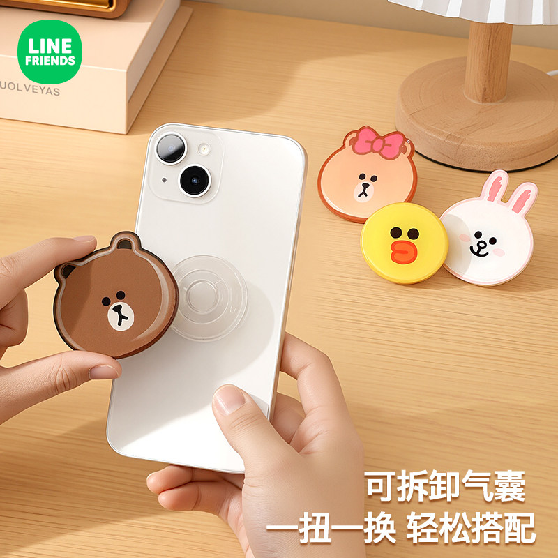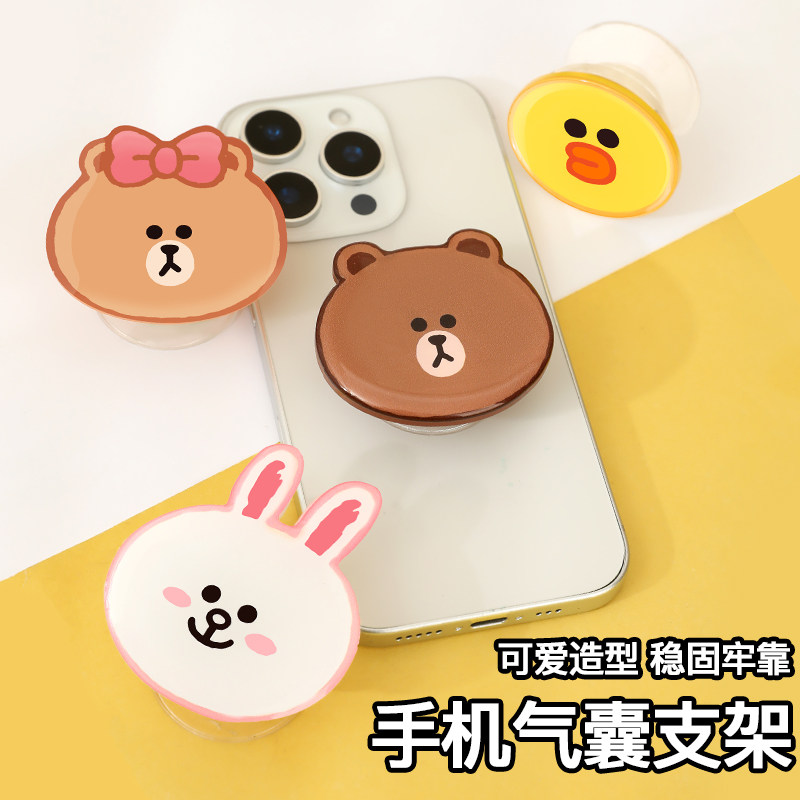 linefriends布朗熊卡通卡可爱折叠伸缩气囊手机支架2024新款多功能懒人桌面支撑架粘贴式男女追剧神器扣指环