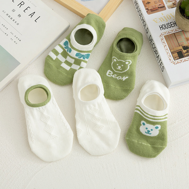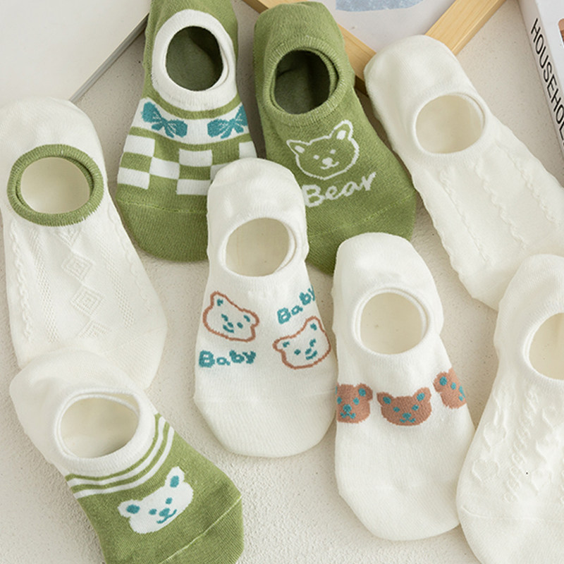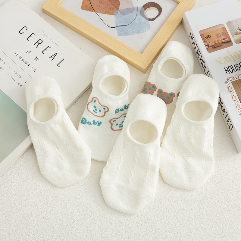 白色袜子女纯棉抗菌短袜浅口袜ins潮秋冬款小熊不掉跟隐形学生袜