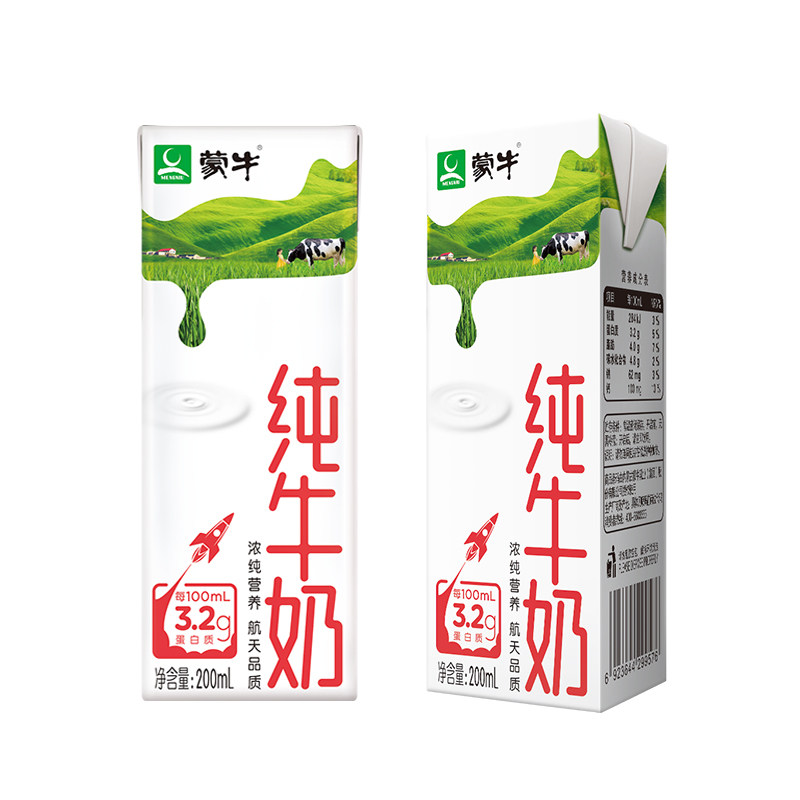 1月新日期蒙牛纯牛奶200mL*24盒学生成人营养早餐奶全脂牛奶