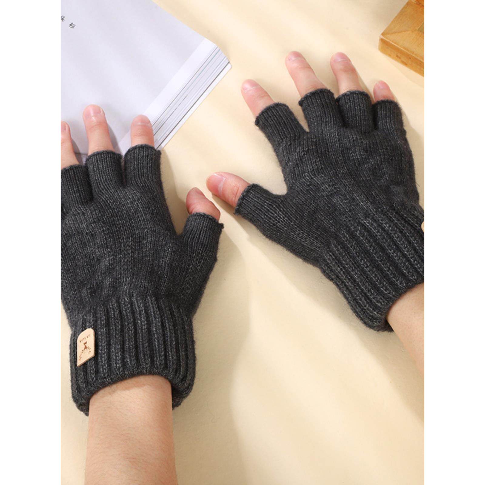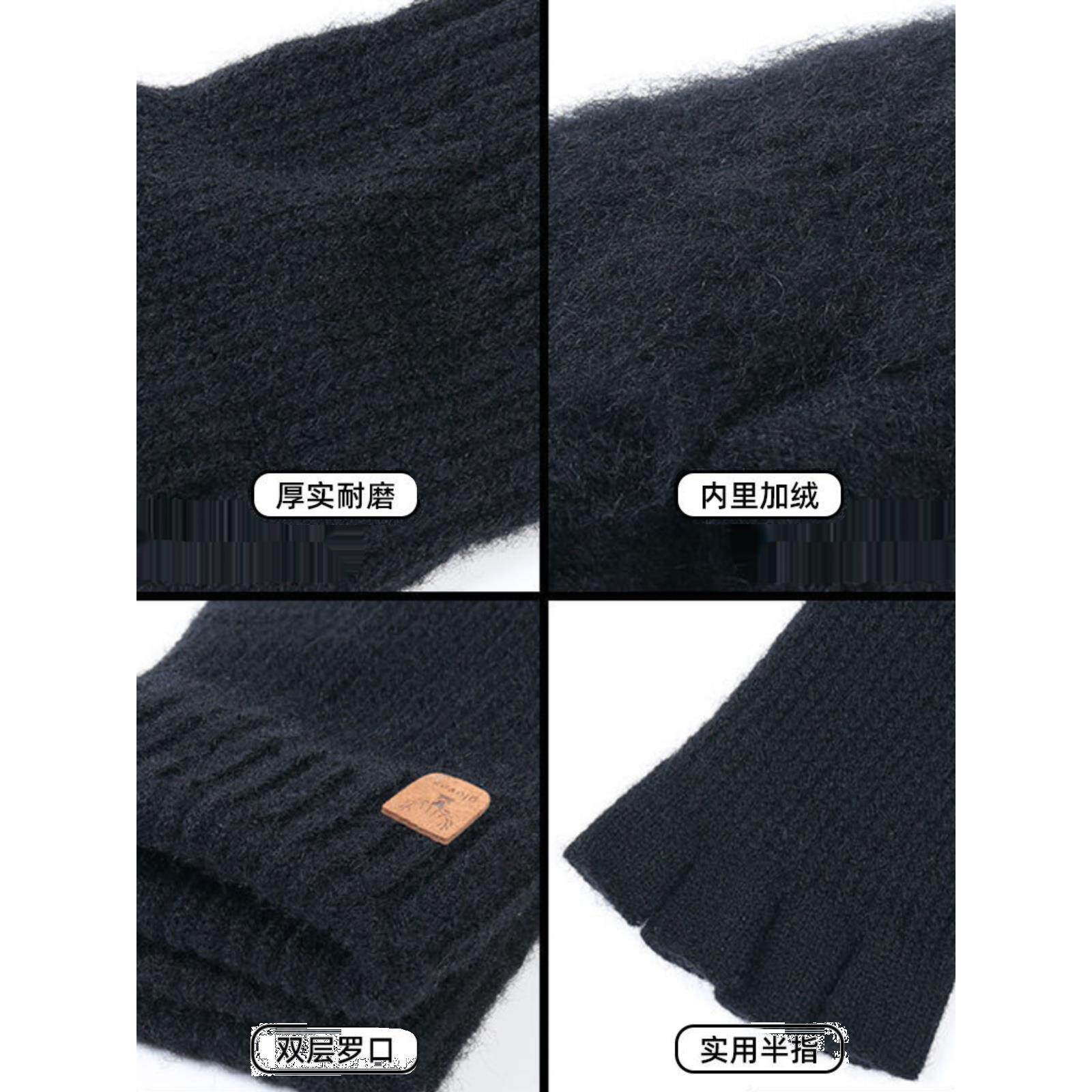 半指手套男士冬天保暖加绒加厚针织毛线露指学生写字骑行秋冬季男