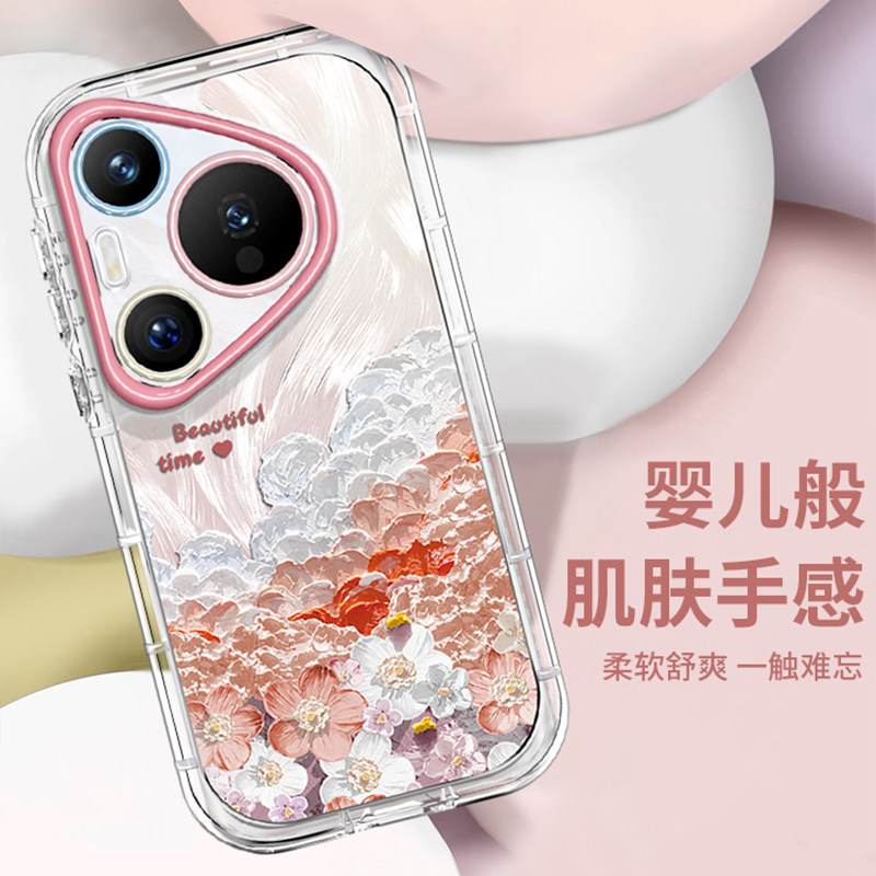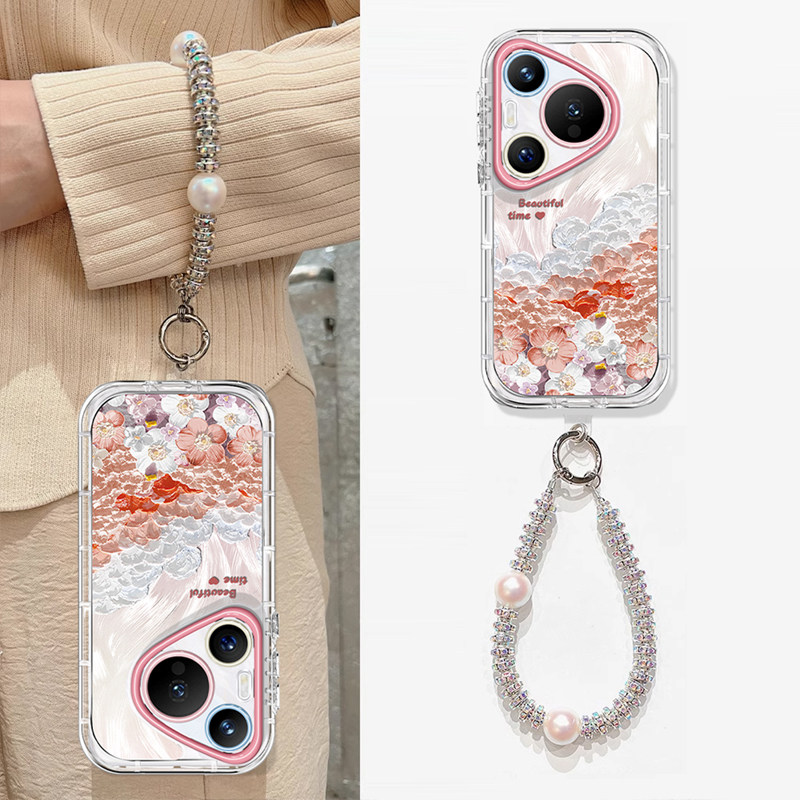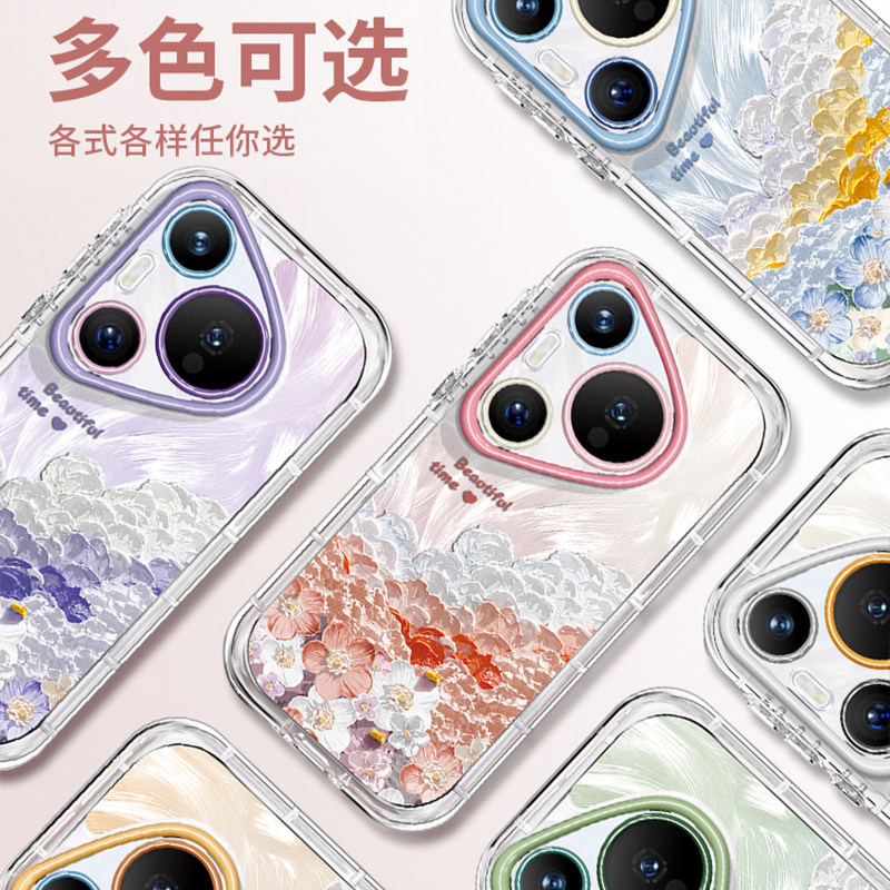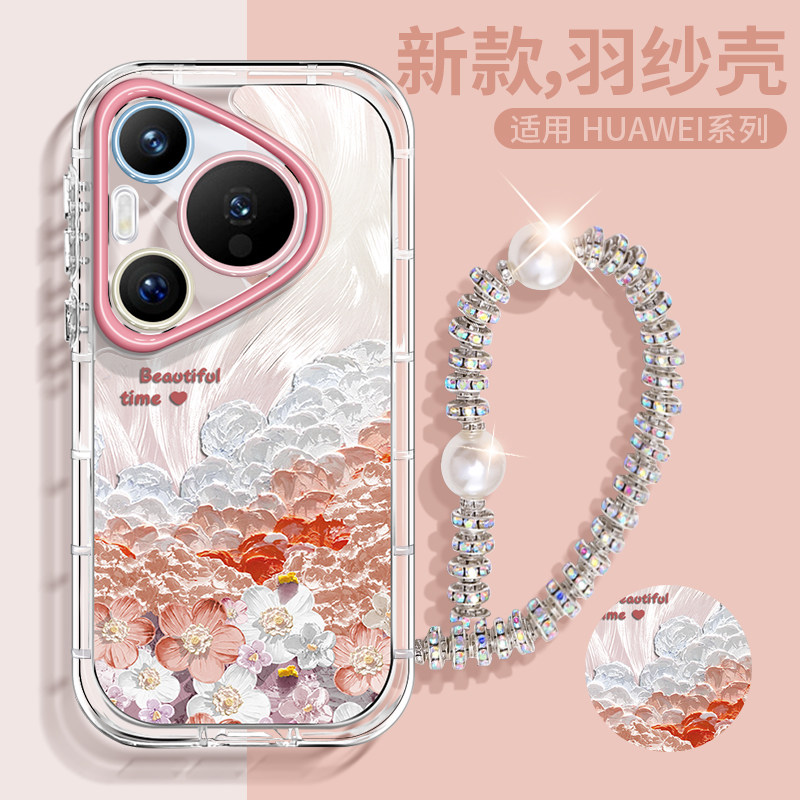 蜡笔花朵适用华为pura70pro手机壳爆款p70镭射羽纱P40/30防摔抗指纹p60pro全包手链pura80女ultra高级p60硅胶