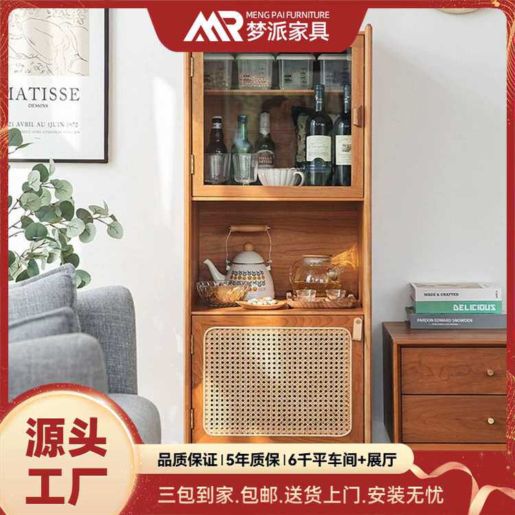北欧实木餐边柜日式客厅储物柜立柜白蜡木酒水柜茶水柜沙发边柜