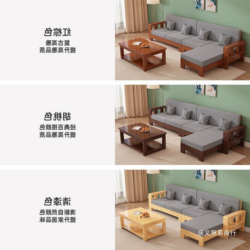 直销客厅简约现代全转角凉椅新中式实木沙发组合家用出租房小庆义