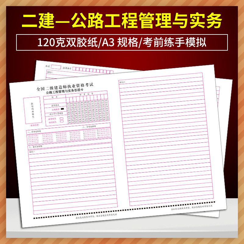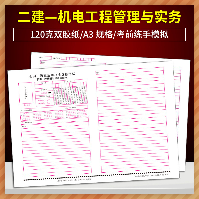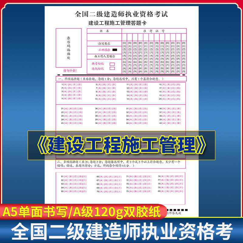 二级建造师答题卡二建考试工程管理与实务法规及相关知识建设工程施工管理市政机电水利水电公路120克 A3 A5