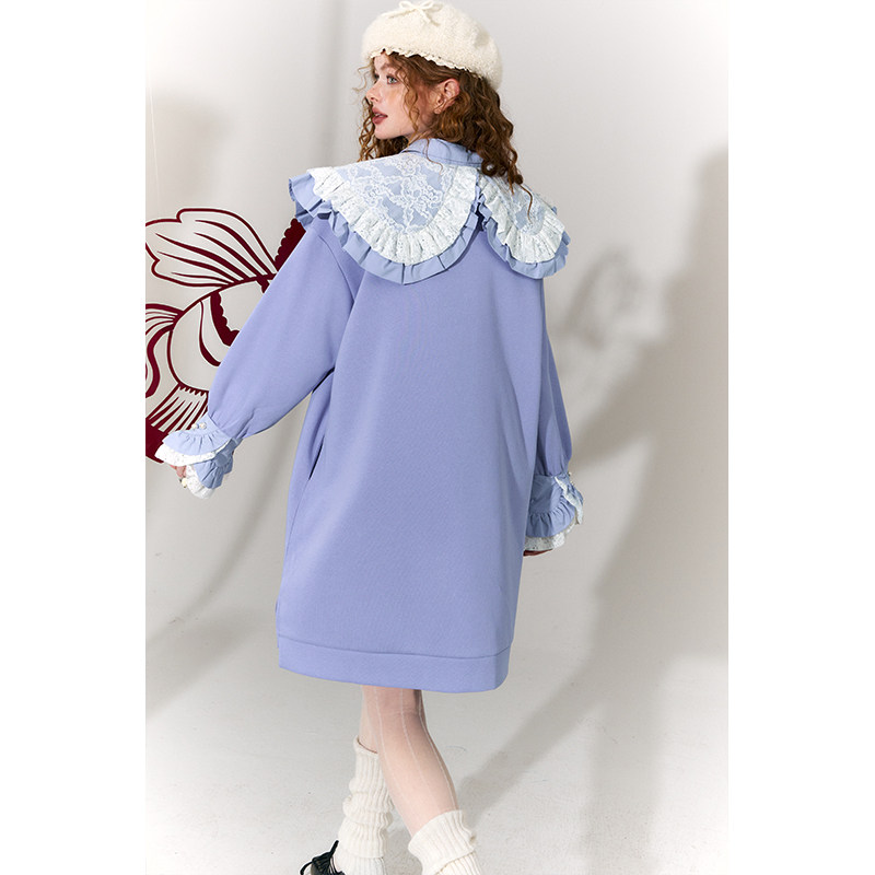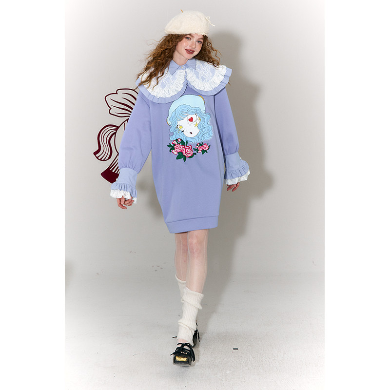 妖精的口袋可拆卸蕾丝领印花连衣裙女2026早春新款宫廷感甜美减龄