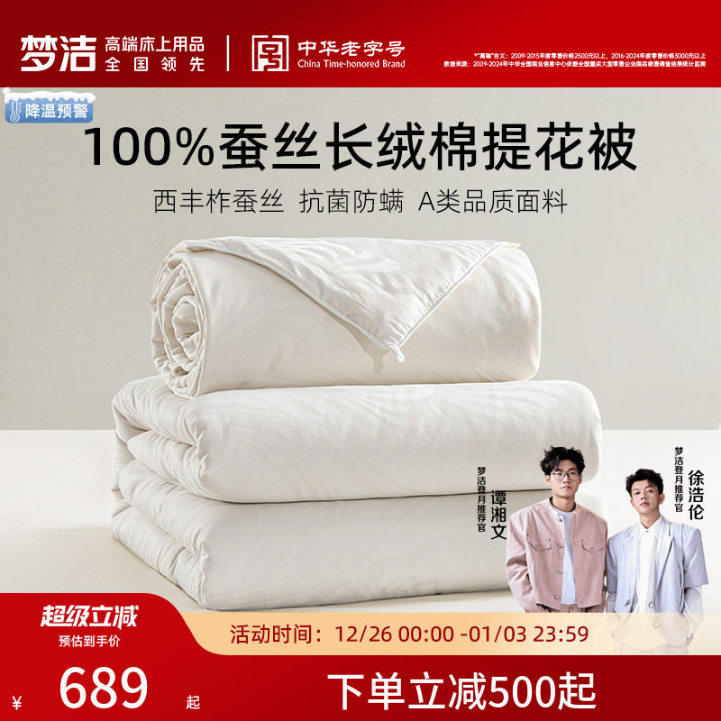 梦洁100蚕丝被子被芯四季通用二合一子母被柞蚕丝抗菌春秋被冬被