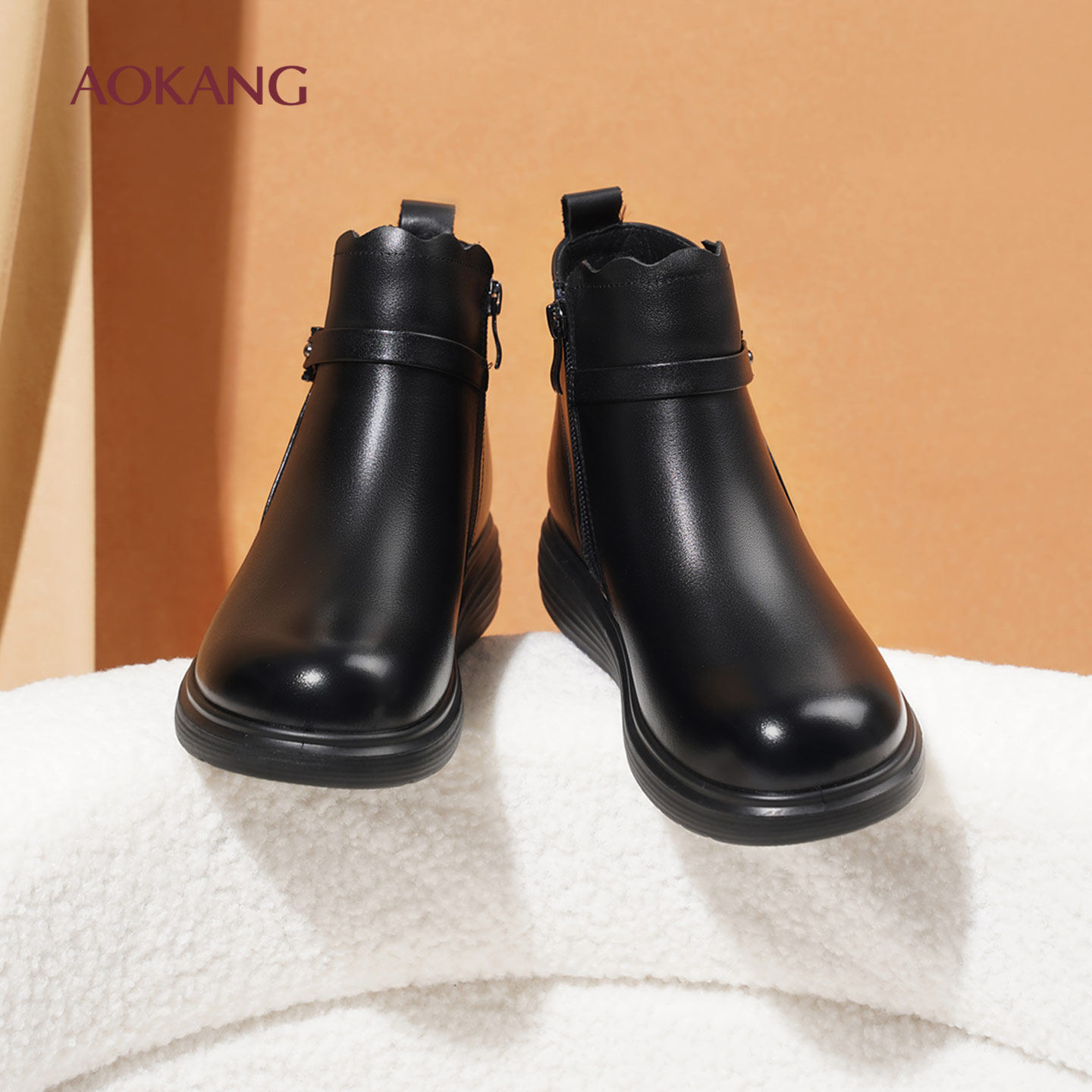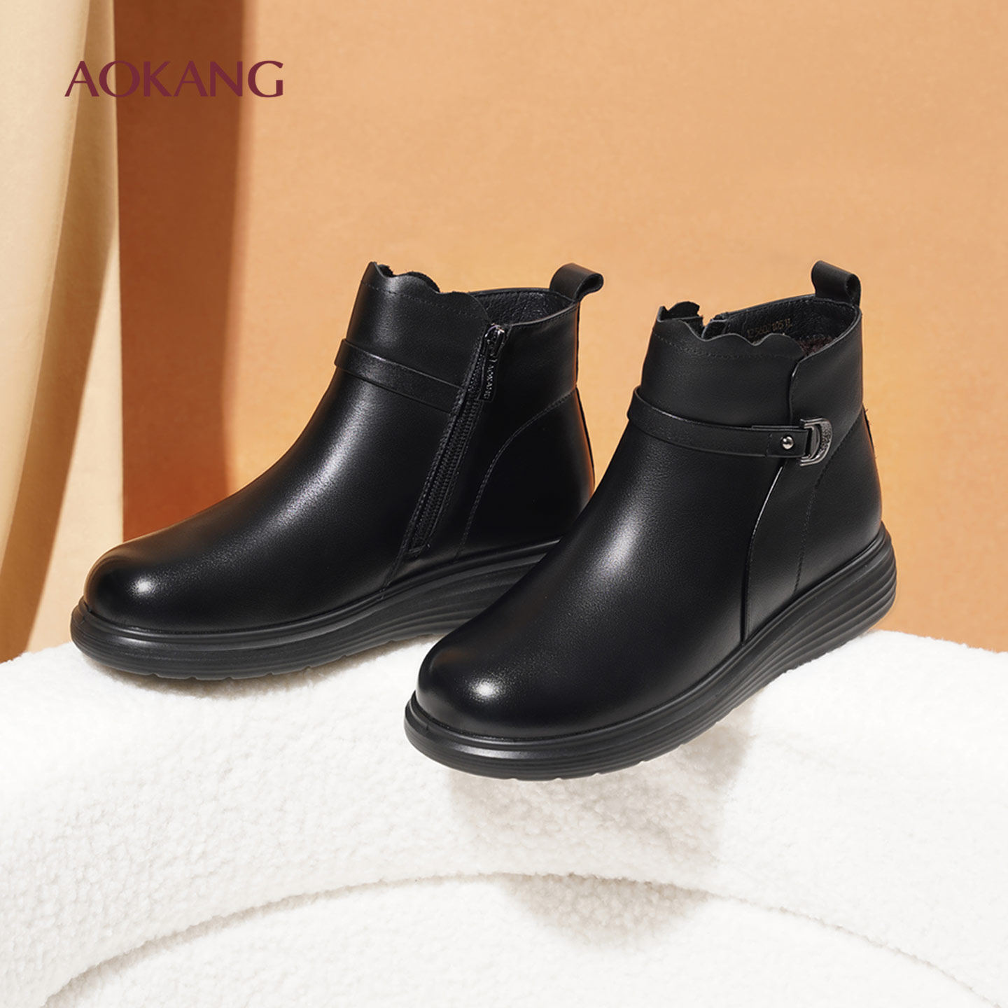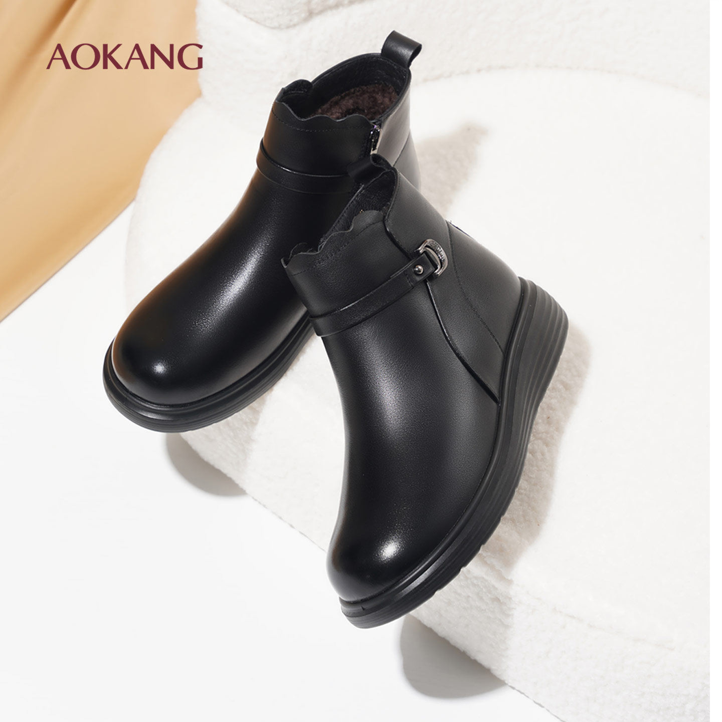 奥康 女鞋2025冬季新款女棉鞋平底舒适简约保暖妈妈鞋L