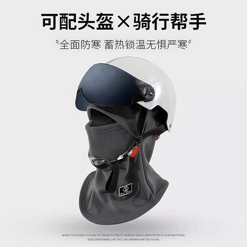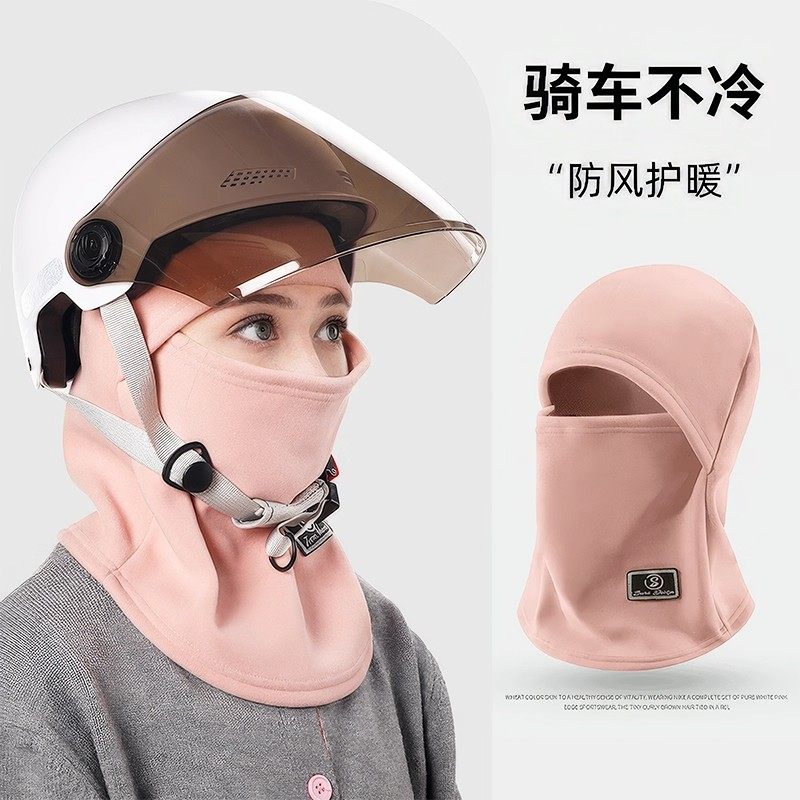 冬季保暖头套防寒面罩女骑行电动车防风头盔内胆围脖一体帽男骑车