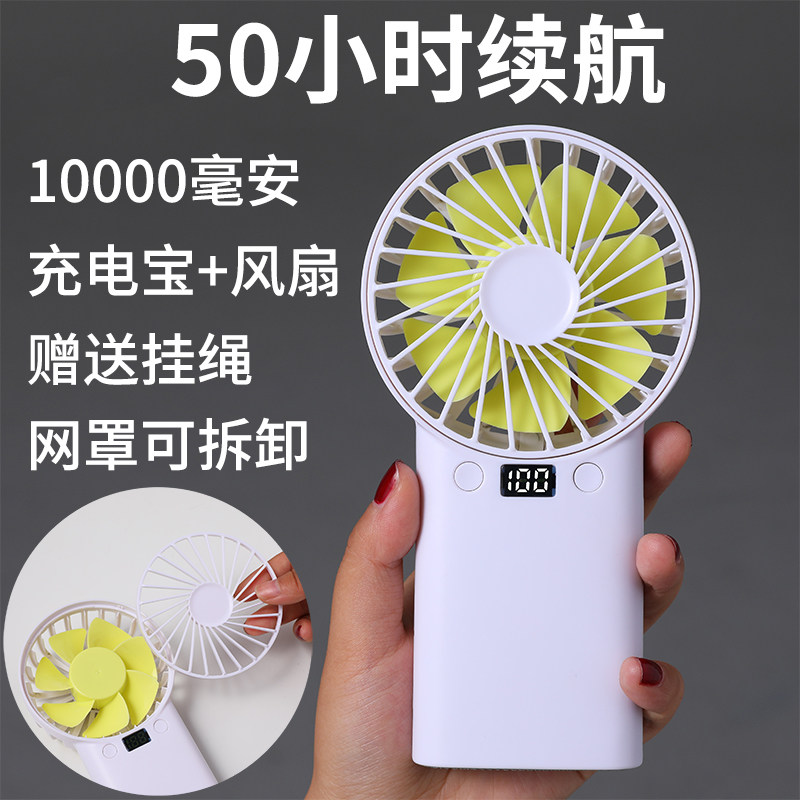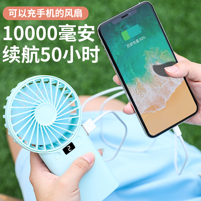 10000mAh风扇充电宝usb电池大风力迷你手持拿桌面便携式学生宿舍空调静音小型制冷电扇床上寝室随身电风扇