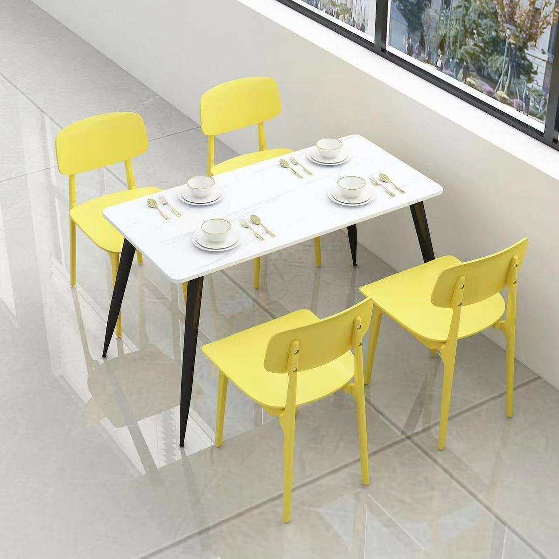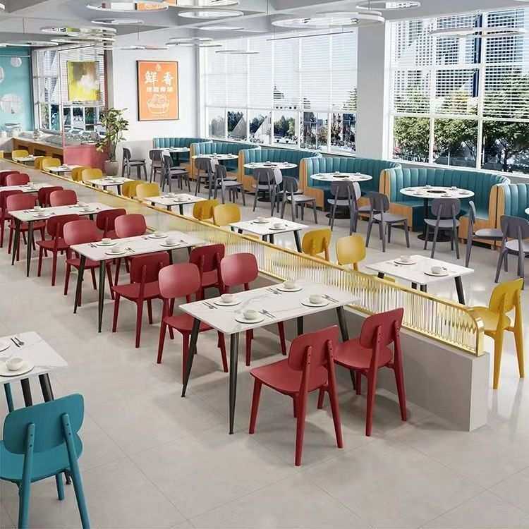 商用岩板快餐店小吃面馆桌椅公司员工学校食堂美食城餐饮桌椅组合