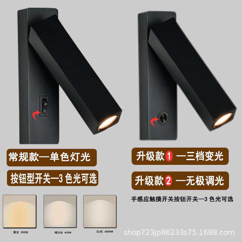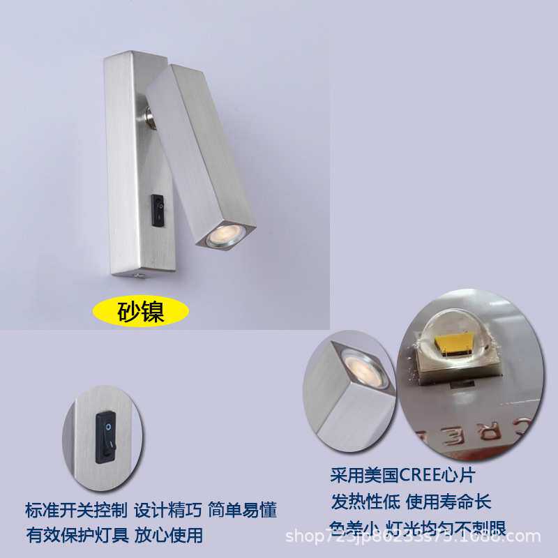 北欧简约卧室书房床头阅读壁灯酒店简约旋转调光LED灯阅读小射灯