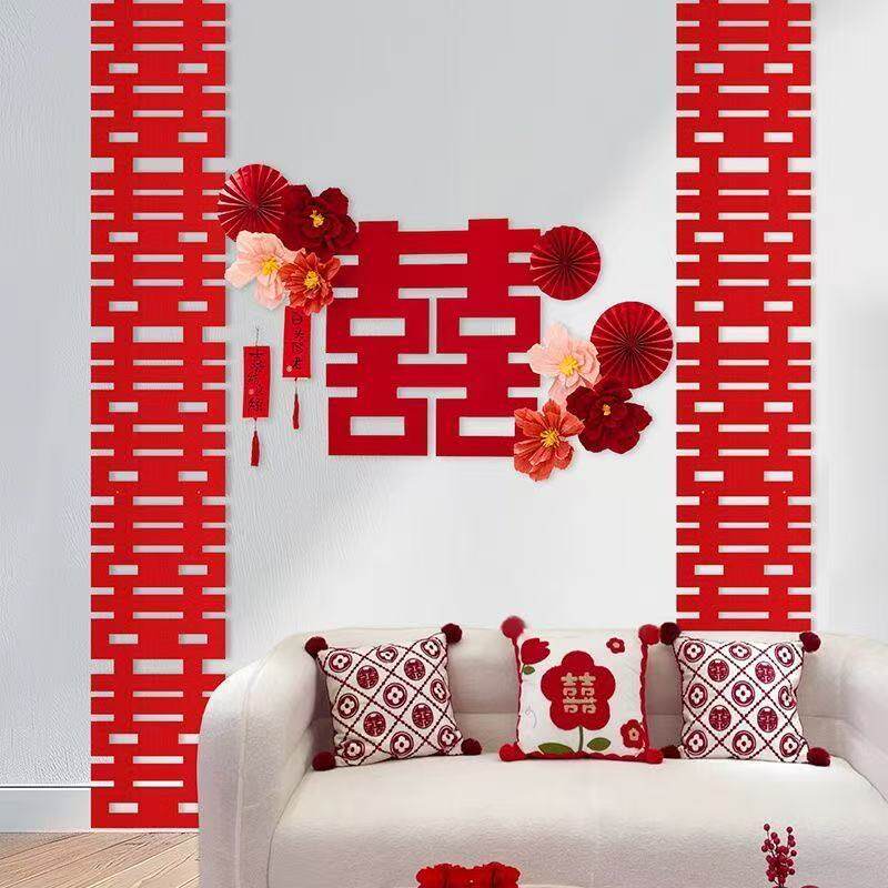 婚房布置长条套装喜字结婚六连喜婚礼装饰背景墙男女拍照订婚婚庆
