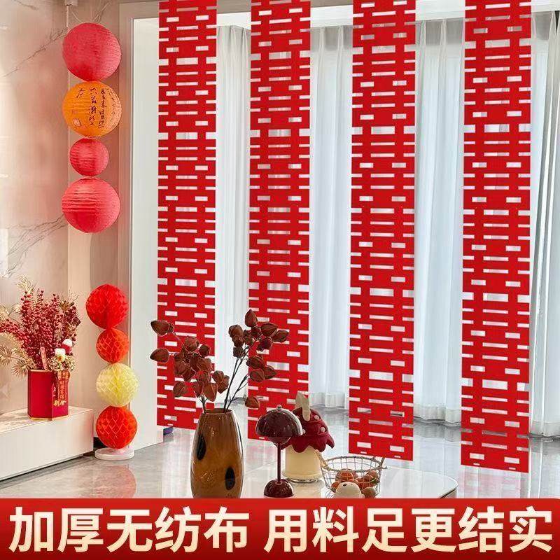 结婚窗帘装饰拉花挂饰婚礼婚房新房布置男方女方卧室客厅长条喜字