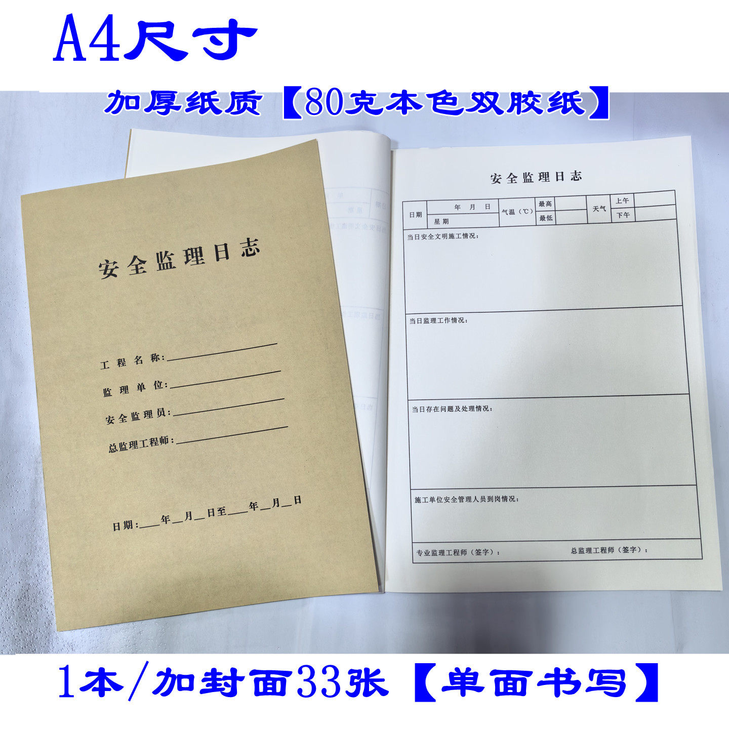 包邮A4施工日志 安全监理日志10本A4建筑工程日志 监理日志特价包