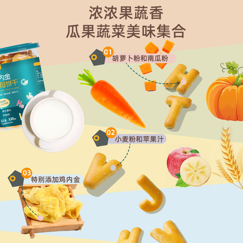 鸡内金字母高钙儿童饼干3宝宝婴儿零食1一2岁6个月无添加糖精辅食