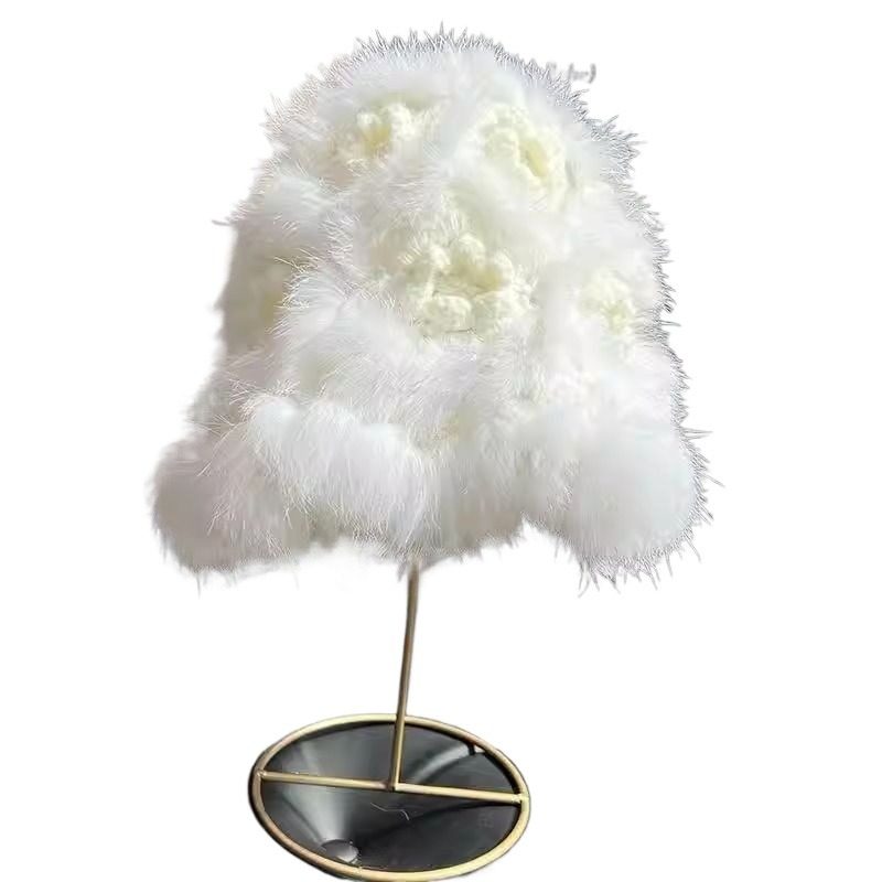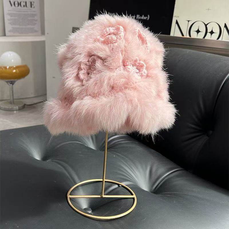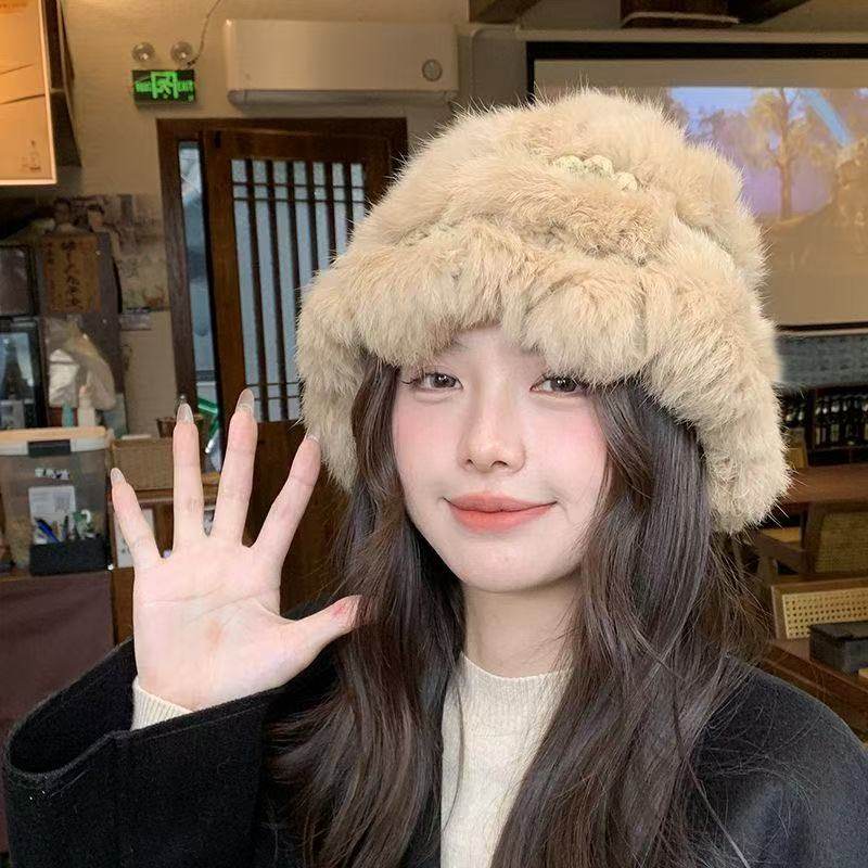 兔毛毛帽子女冬可爱毛茸茸网红皮草秋冬季加厚毛绒保暖毛线针织帽